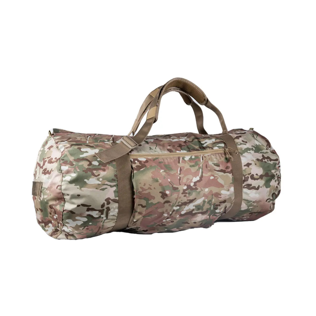 Баул призначений для зберігання та транспортування особистих речей військовослужбовця. Він має великий об’єм, ергономічний дизайн та надійну фурнітуру, щоб без проблем вмістити необхідне екіпірування та одяг. А м’які демпфери, якими оснащені лямки, додають зручності під час носіння.Особливості товару Баул пошитий зі щільного поліестру. Завдяки водовідштовхувальному покриттю захищає вміст від до дощу, снігу чи мряки. Автоматичне обладнання, на якому відшитий виріб, гарантує точність швів і надійність конструкції. Місця найбільшого тиску, наприклад на лямках, прошиті на спеціальній закріпочній машині, що значно збільшує міцність з’єднання. Армовані нитки, які використовуються для пошиття, й внутрішні шви, посилені оздоблювальною стрічкою, також подовжують термін експлуатації. До інших корисних якостей баула належать такі: Основне відділення застібається потужною блискавкою (№ 10) з двома бігунками. Вона вміщена по центру між лямками і прикривається широким (9 см) клапаном на липучках. Зверху на клапані також нашита липучка, на яку можна фіксувати ідентифікатори, а поруч – панель, на якій ідентифікаційні дані можна вписати ручкою чи маркером. Широкі (5 см) лямки складаються з двох шарів стропи, завдяки чому здатні витримати велике навантаження. Крім того, вони дають можливість носити баул на спині як рюкзак або в руках як звичайну сумку. За допомогою міцних двощілинних пряжок (6 см) можна відрегулювати їхню довжину до зручного рівня. А демпферні накладки (40×7,5 см), що закріплюються на стропі трьома еластичними фіксаторами, зменшують навантаження на плечі. За потреби їх можна зняти. До баула лямки прикріплені на дві смужки тієї самої широкої стропи. Причому нижня частина лямок кріпиться до баула під невеликим кутом, щоб було комфортніше носити його як рюкзак. Стропа, яка опоясує сумку по колу в двох місцях, додатково зміцнює конструкцію і збільшує загальну довговічність виробу. Внутрішніх кишень тут немає, однак є одна велика (37×38 см) зовнішня кишеня. На ній сформовані складки, що збільшують її місткість при наповненні. Всередину можна покласти різні дрібні предмети, документи тощо, до яких потрібен швидкий доступ. На обох торцях баула вміщені ручки, завдяки яким можна носити його вертикально або вдвох із кимось, легше вкладати та діставати з високих полиць, багажника автомобіля тощо.Технічні характеристики Матеріал: поліестр. Стропа: нейлон, 5 см. Об’єм: 105 л. Діаметр: 38 см. Довжина: 84 см. Вага: 1086 г. Вантажопідйомність: 50 кг.