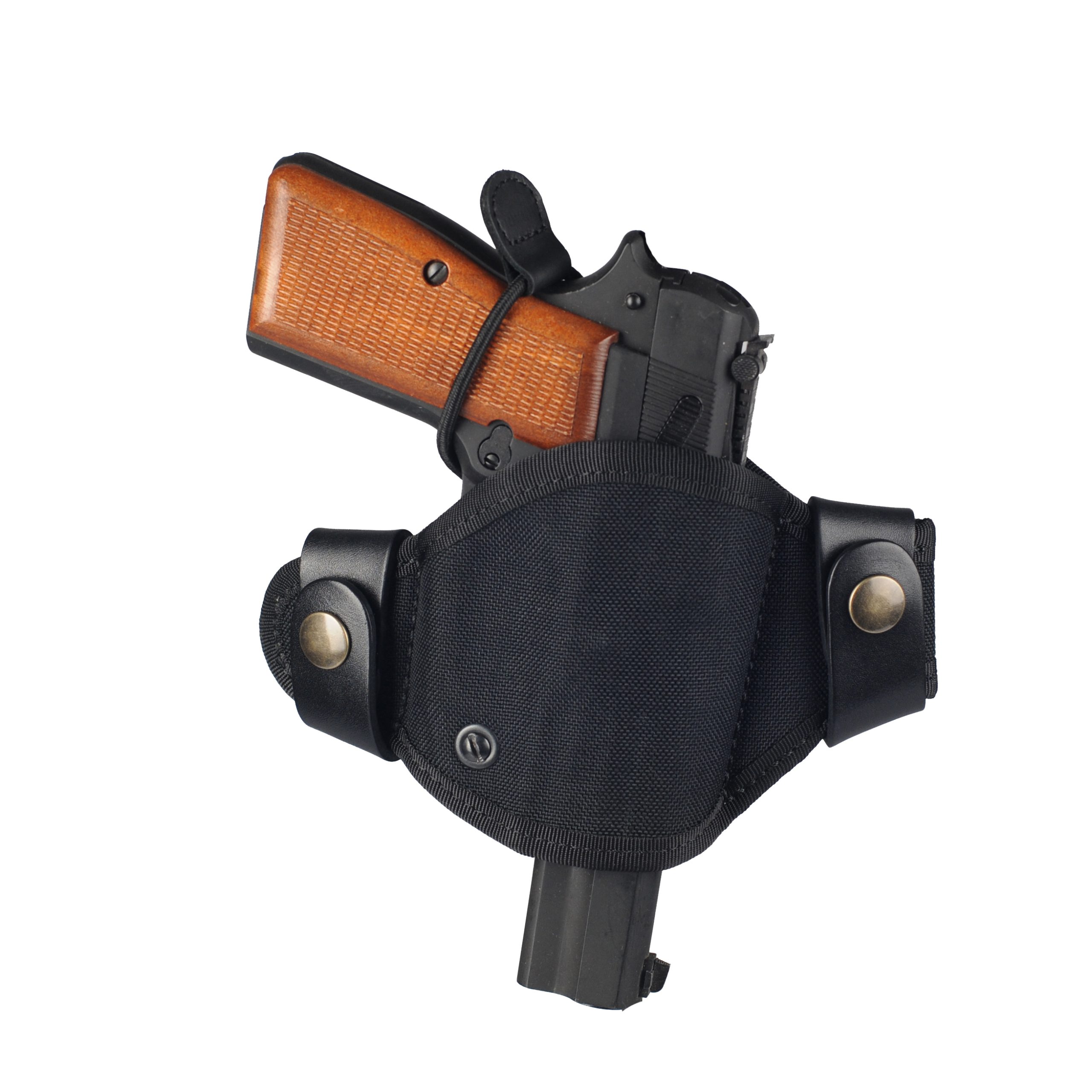 Швидкознімна кобура для прихованого носіння зброї на поясі. Забезпечує щільне прилягання до тіла. Завдяки переставному поясному кріпленню підходить для ременів шириною 40 та 50 мм. Саме кріплення виготовлене з ремінної шкіри та фіксується на кнопках, що дозволяє надягати й знімати кобуру, не знімаючи пояса.
