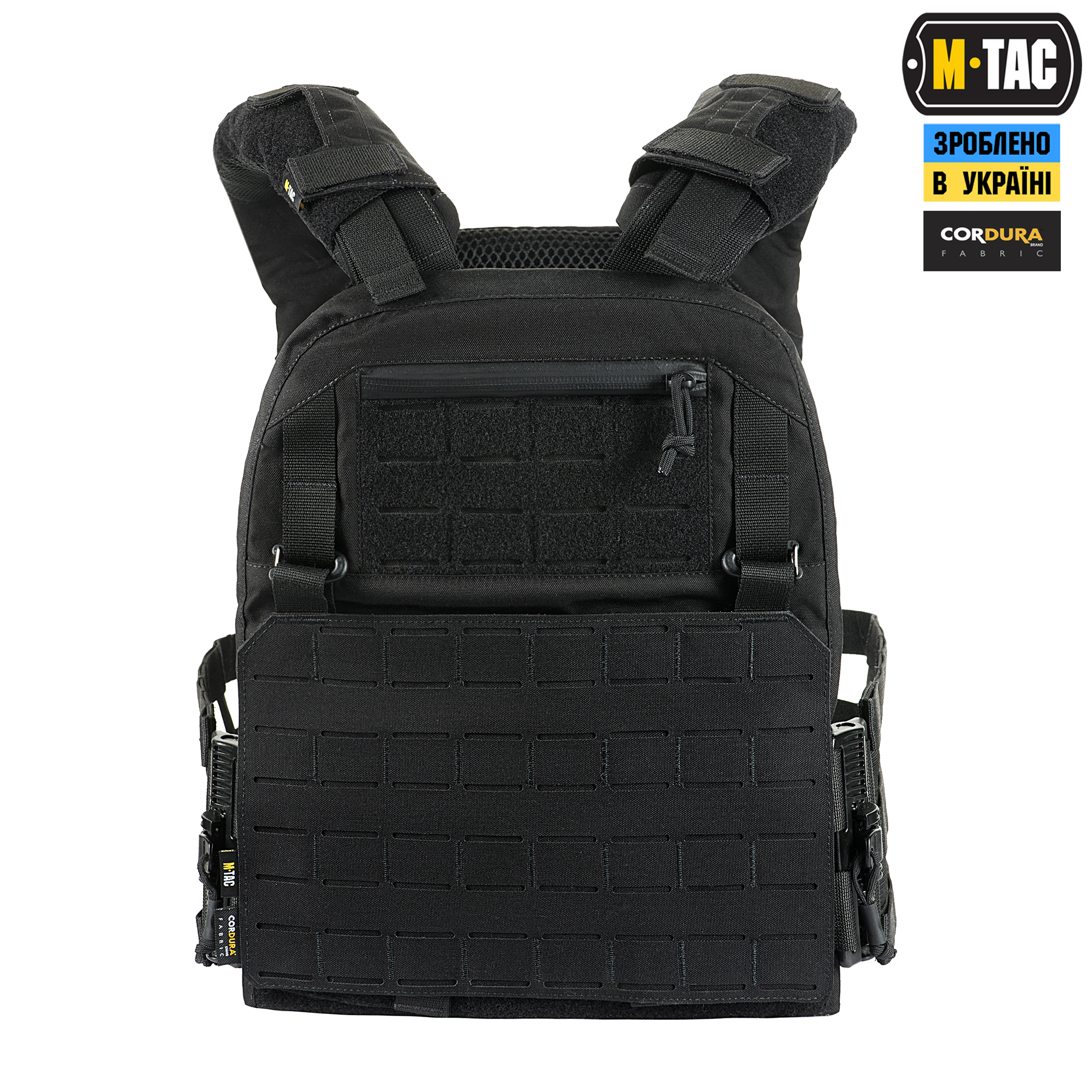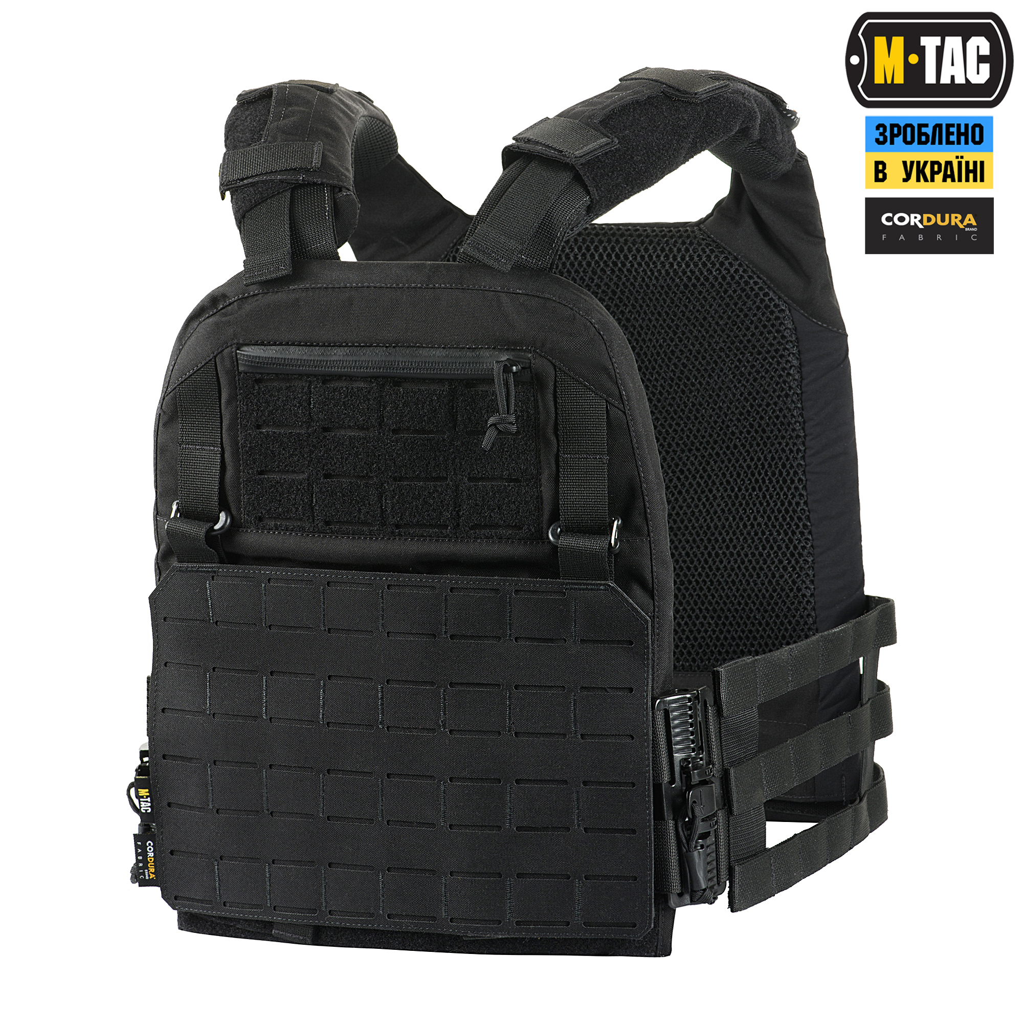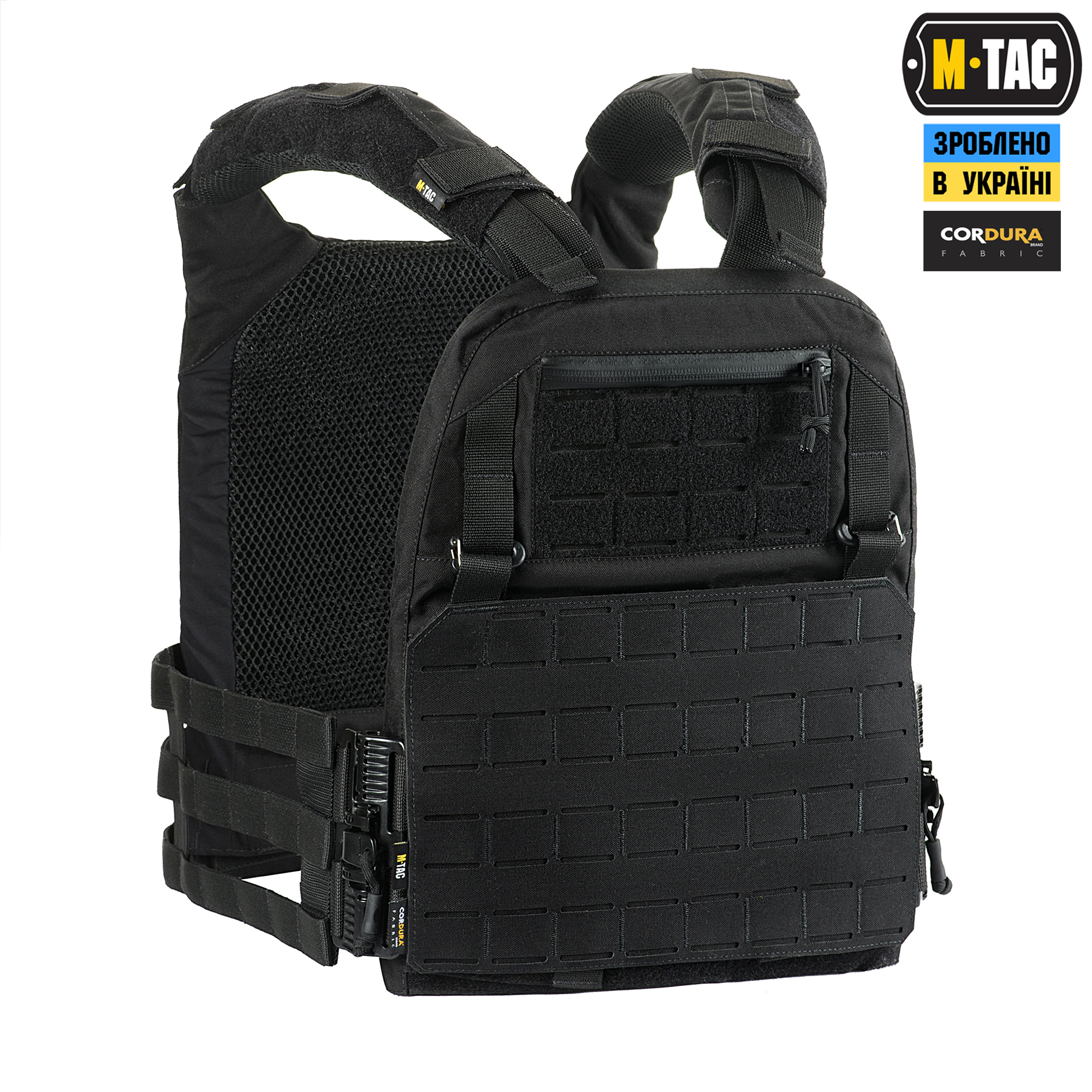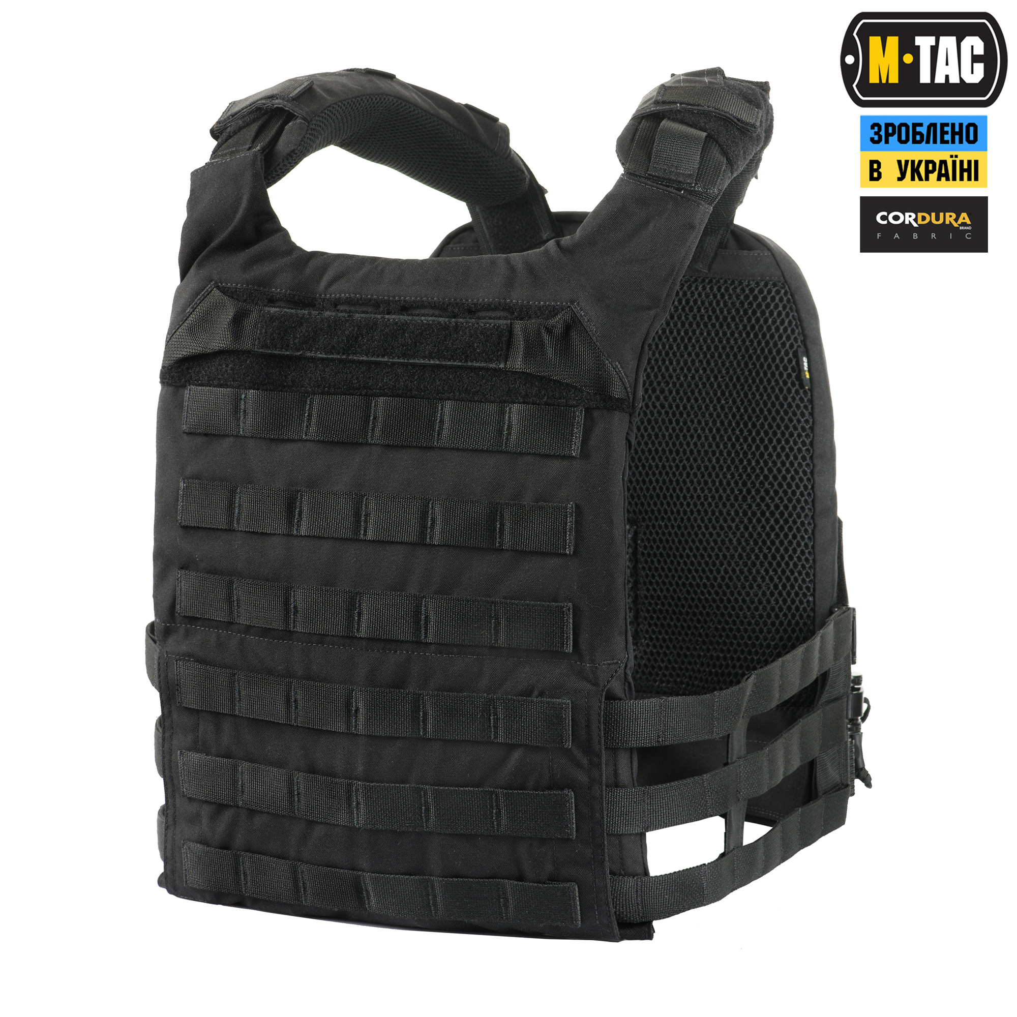 M-Tac плитоноска Cuirass QRS XL Gen.II – це вдосконалена модель індивідуального бронезахисту в лінійці PLATE CARRIER. Розроблена дизайнерами бренду під стандартні бронеплити ESAPI (USA) Extra Large (35.5 х 28 см). Також за допомогою внутрішніх строп плитоноску можна підлаштувати під розмір плити Large (33.7 х 26 см). Дана модель має систему швидкого скидання з фурнітури 2М ROC Buckle і регулюється за об’ємом. Виготовлена з високоякісного матеріалу Cordura 500D – надміцної тканини, стійкої до стирання і високих навантажень. З внутрішньої сторони плитоноски є вставки з 3D сітки, які забезпечують амортизацію та циркуляцію повітря. Ергономічні плечові лямки зручні у використанні й органічно повторюють контури тіла. Скелетоподібний камербанд значно зменшує вагу виробу і при необхідності дозволяє розмістити підсумки. На фронтальній частині виробу знаходиться Velcro-панель з прорізами, на яку можна закріпити молле-сумісне спорядження та ID-ідентифікатори. Вгорі плитоноски дизайнери бренду передбачили невелике адміністративне відділення на вологозахисній блискавці AquaGuard. Дана кишеня розрахована на зберігання невеликих плоских речей, таких як посвідчення, ключі, запальничка та інші невеликі предмети. Знизу бронежилета знаходиться швидкознімний модуль з молле інтерфейсом, який виконаний за технологією LaserCut і регулюється по висоті. Щоб уникнути випадкового зривання з основи Velcro, він фіксується до строп за допомогою карабінів Woojin. Така система розрахована на надійне кріплення додаткового спорядження. Ззаду є класичний молле-інтерфейс і ручка для евакуації, яка в похідному положенні фіксується до спинки панелями Velcro. Плитоноска Cuirass QRS XL Gen.II стане незамінною при виконанні широкого спектра поставлених завдань і однозначно зацікавить любителів сучасного тактичного спорядження. Завдяки своїм унікальним якостям Cordura широко застосовується в тактичному спорядженні військових, сил правопорядку і спеціального призначення. В основному – це матеріали з лінійною щільністю 1000d і 500d. Лінійна щільність – це співвідношення маси нитки матерії і її довжини. Вимірюється в Денье (denier). Ця одиниця виміру загалом застосовується для нейлонових виробів. Відповідно, чим вище цей показник, тим щільніша і важча тканина. Фізико-технічні характеристики CORDURA 1000D дуже високі, розривне навантаження становить близько 3000 Н, роздираюче навантаження близько 150 Н. Стійкість до стирання більше 50000 циклів. Використовується для одягу, чохлів, підсумків. Вироби, пошиті з матеріалів CORDURA безсумнівно пройдуть випробування часом і відстанню. CORDURA – це міцність, надійність і стиль. За показниками міцності вона поза конкуренцією. Завдяки своїм унікальним якостям Cordura широко застосовується в тактичному спорядженні військових, сил правопорядку і спеціального призначення. В основному – це матеріали з лінійною щільністю 1000d і 500d. Лінійна щільність – це співвідношення маси нитки матерії і її довжини. Вимірюється в Денье (denier). Ця одиниця виміру загалом застосовується для нейлонових виробів. Відповідно, чим вище цей показник, тим щільніша і важча тканина. Фізико-технічні характеристики CORDURA 1000D дуже високі, розривне навантаження становить близько 3000 Н, роздираюче навантаження близько 150 Н. Стійкість до стирання більше 50000 циклів. Використовується для одягу, чохлів, підсумків. Вироби, пошиті з матеріалів CORDURA безсумнів