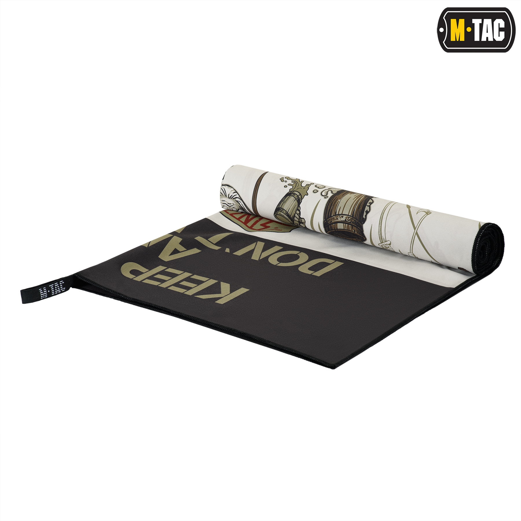 M-TAC РУШНИК МІКРОФІБРА GLORY 150Х75 – стане незамінною частиною ваших подорожей, походів, тренувань та фізичних активностей. Головною перевагою рушника з мікрофібри – є його здатність ефективно вбирати вологу та швидко сохнути. Також, він є м’яким та приємним до тіла, а завдяки невеликій товщині не займатиме багато місця рюкзаку або сумці. Принт рушника зображує сюжет, в якому український захисник потрапляє в Валгаллу. Там, з одним зі стародавніх воїнів, він зійшовся в дуелі з армреслінгу, а час до початку поєдинку для них відраховує сам Одін. Написи на рушнику “KEEP CALM AND DONT WORRY” та “IF YOU DIE THERE WILL BE GLORY” – символізують славу для кожного захисника рідної землі, навіть після смерті. З бічної частини рушника розташована бірка М-Тас з рекомендаціями щодо догляду, яка також може виконувати роль петлі для підвішування. В комплекті з рушником йде сітчастий чохол, що закривається за допомогою шнурка з фіксатором.прати при 30॰; випрати окремо перед першим використанням; не використовувати пом’якшувач для тканин; прати виключно з темними речами; не прасувати; не відбілювати; сушити в сушильній машині за низьких температур.