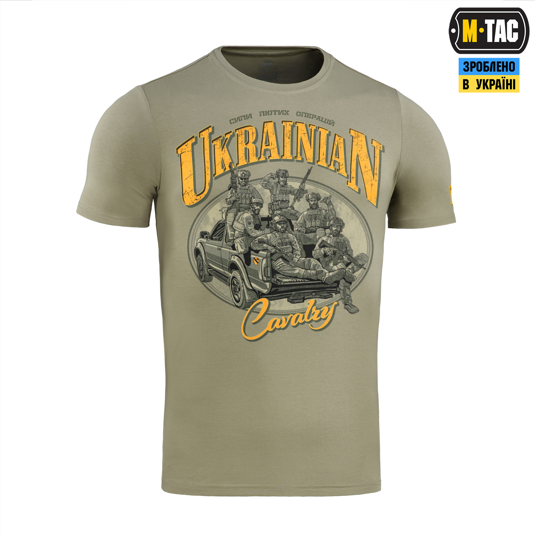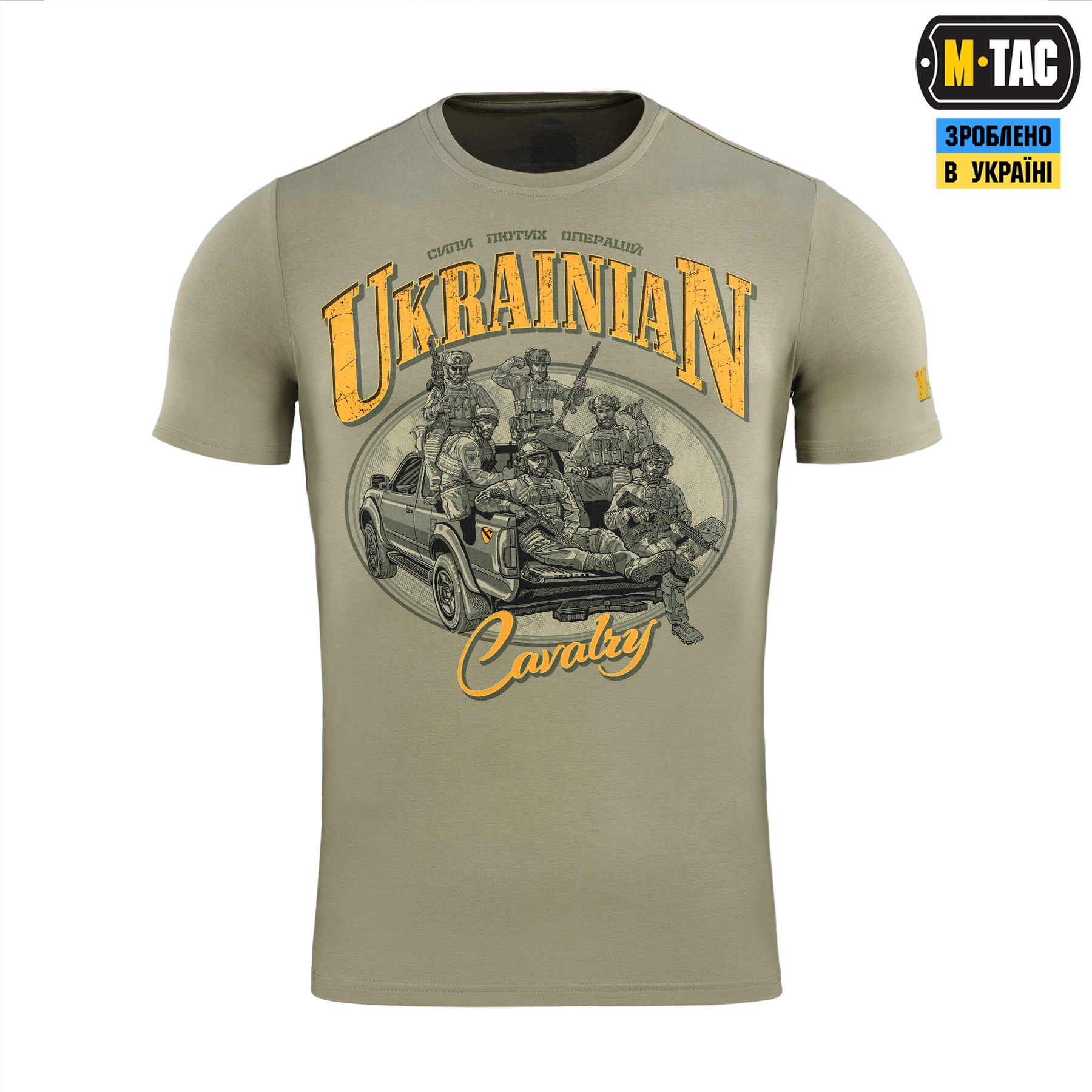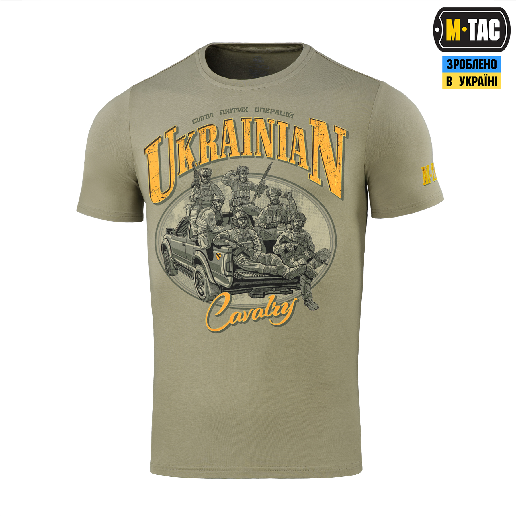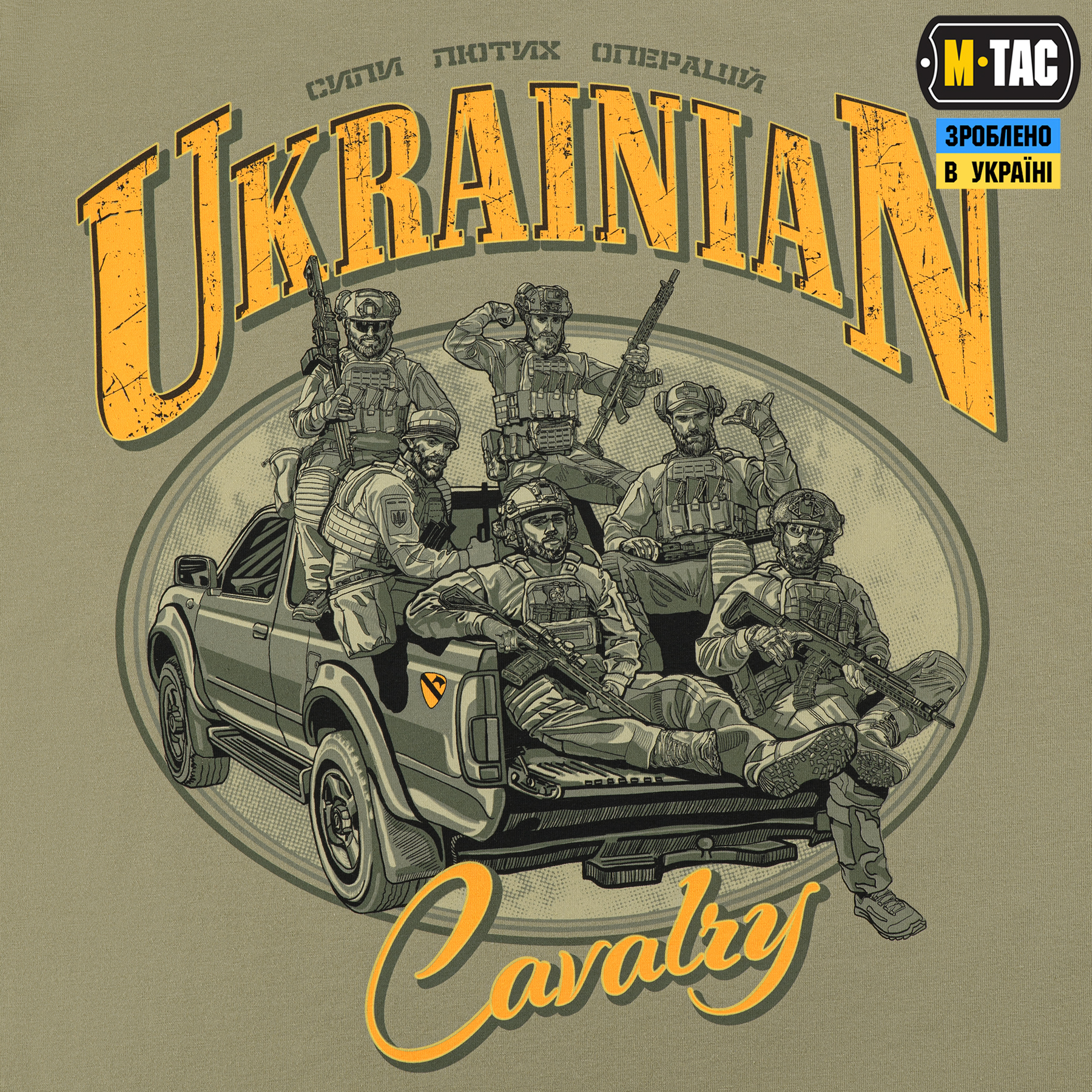 Дизайнери бренду М-Тас створили нову ФУТБОЛКУ UKRAINIAN CAVALRY присвячену воїнам сухопутних військ – сучасній кавалерії. Вони завжди “були на коні” як буквально, так і фігурально, по праву ставши найпрестижнішим родом військ. За дві тисячі років з моменту створення, кавалерія зазнала неабияких змін, зберігши при цьому свої основні чесноти – гідність, рішучість та відданість справі. Зображені на футболці воїні – нащадки славетних традицій минулого, потужна сила найлютіших операцій сьогодення. Наліпка на сталевому “коні”, у вигляді шеврона 1-шої кавалерійської дивізії США, символічно відтворює нерозривний зв’язок минулого й сьогодення. Футболка виготовлена з високоякісної тканини (бавовна, еластан). Зручний крій не обмежує рухів, а тонкий еластичний трикотаж вдало підкреслює рельєф тіла та забезпечує комфорт при використанні. Матеріал: бавовна, еластан; Друк: MagnaColours® (Premium inks resist fading).
