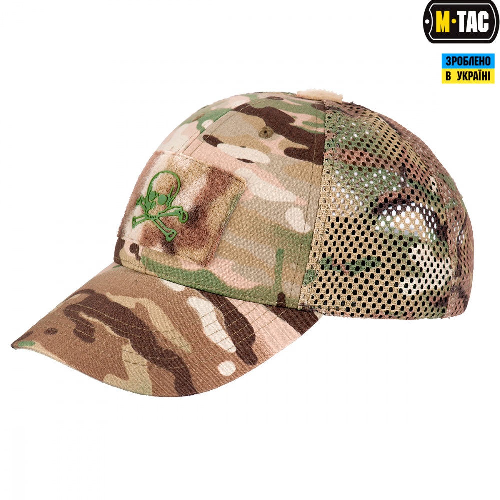 Полегшена тактична бейсболка Pirate Skull від бренду M-Tac. Основною особливістю даного виробу є те, що задня частина “купола” бейсболки пошита з сітки (зроблено спеціально для спекотної погоди). MESH TACTICAL CAP має середню посадку, регулюється і чудово виглядає практично на будь-якій голові. Акуратний вигляд і комфорт забезпечується за рахунок крою з шести клинів і потопоглинаючої стрічки, а розмір бейсболки регулюється за допомогою ремінця на велкро. Всі атрибути Tactical cap дотримані (велкро під патчі й ІЧ маркери на місці). Відмінний варіант для використання на полюванні, на рибалці, в туристичних експедиціях, а також підійде любителям активного відпочинку. Виробник додав іменну панель ззаду і прорезинений логотип PIRATE SKULL на передній панелі велкро, а також велкро панель під ІЧ-патч.