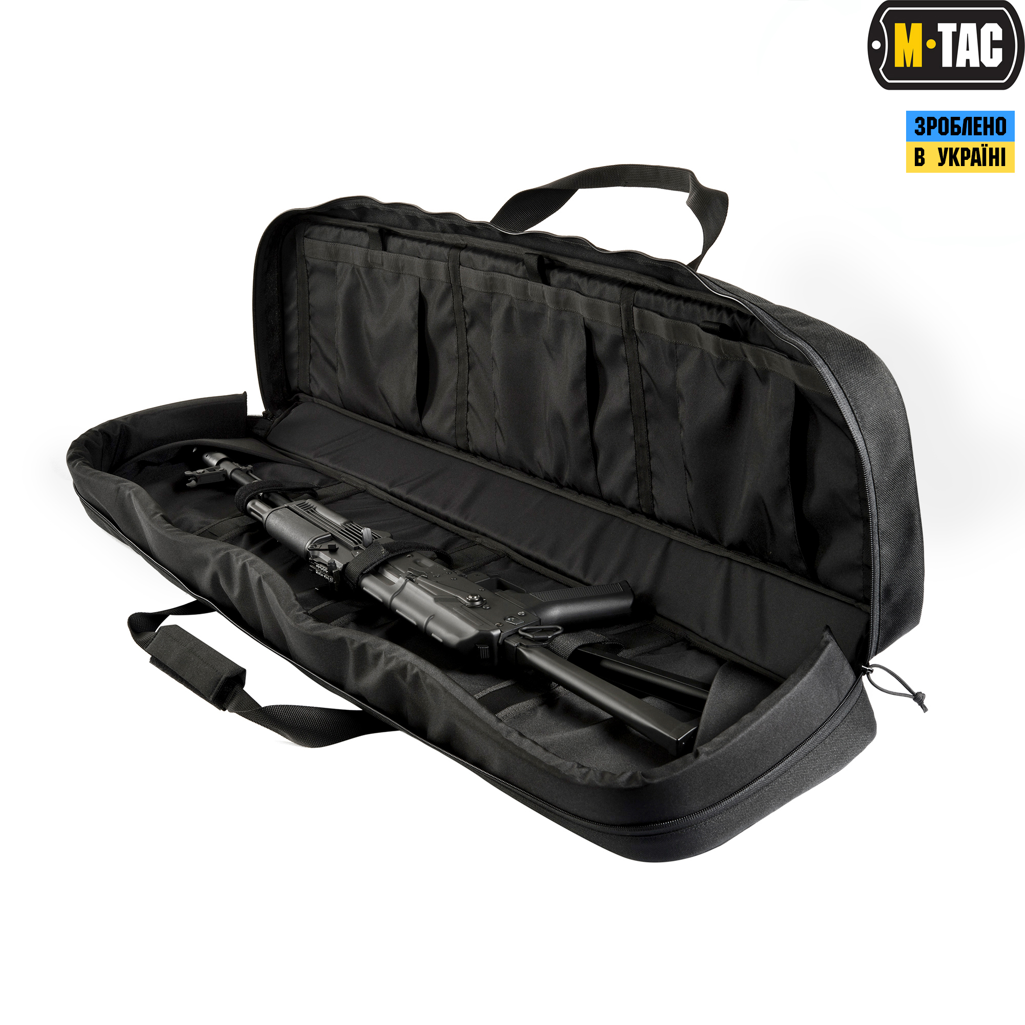 Універсальний транспортний кейс для перенесення зброї. Дана модель розрахована на зброю завдовжки до 110 см. Має вбудовані демпферні вставки. Дві внутрішні кишені-підсумка під магазини. Кейс досить жорсткий. Має ручки для перенесення. Фіксація і замикання зброї відбувається за рахунок строп на велкро.