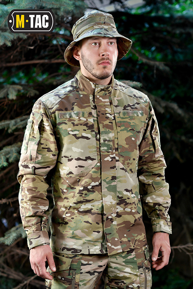 Матеріал – американська тканина NYCO рип-стоп:нейлон, бавовна. Оптимальне поєднання стійкості до зношування і повітропроникності. Саме такої якості тканина йде на пошиття уніформи для військових армії США. Тканина в оригінальному кольорі Crye Precision MultiCam, із комплексною обробкою з NIR просоченням і просоченням Teflon, який захищає матеріал від бруду і води.