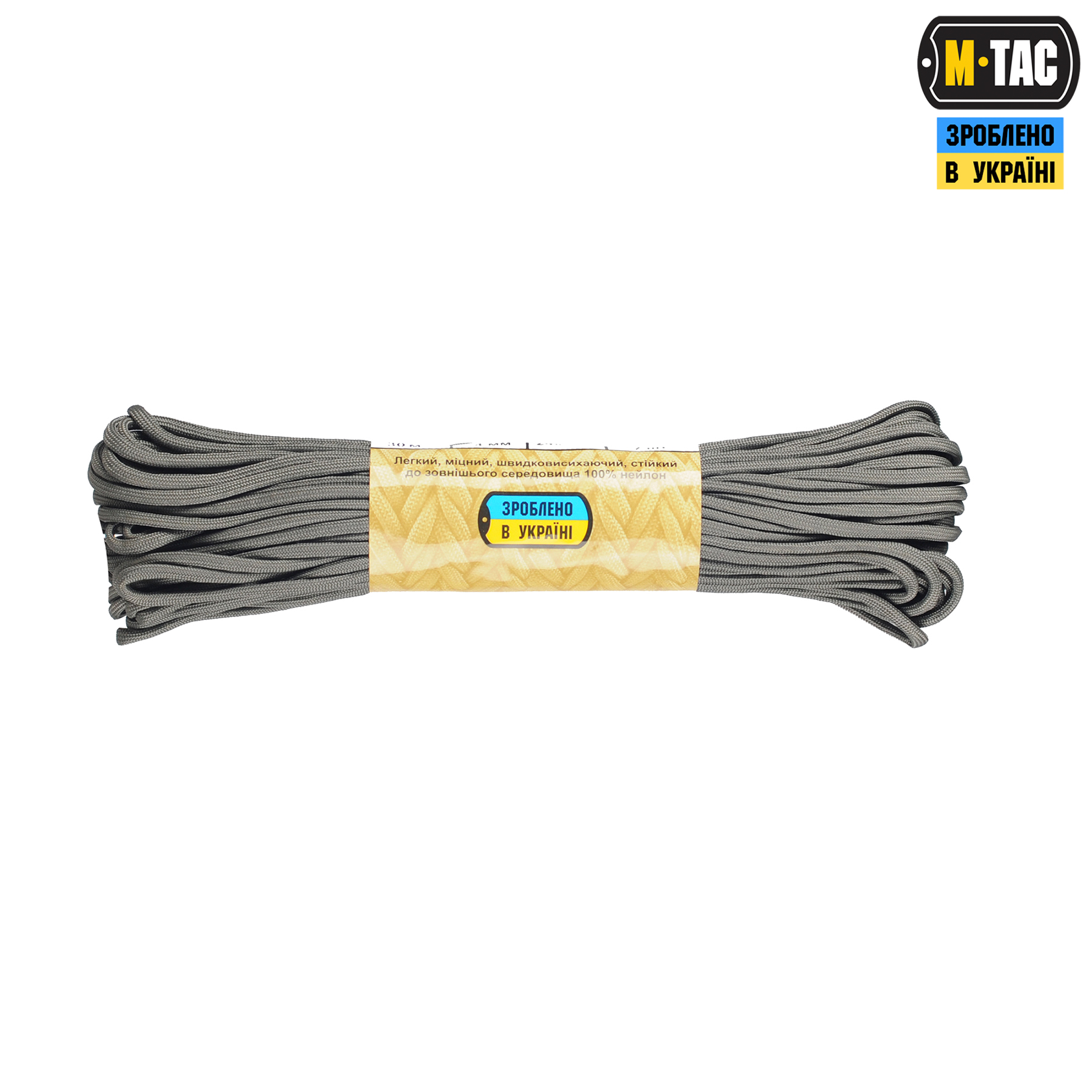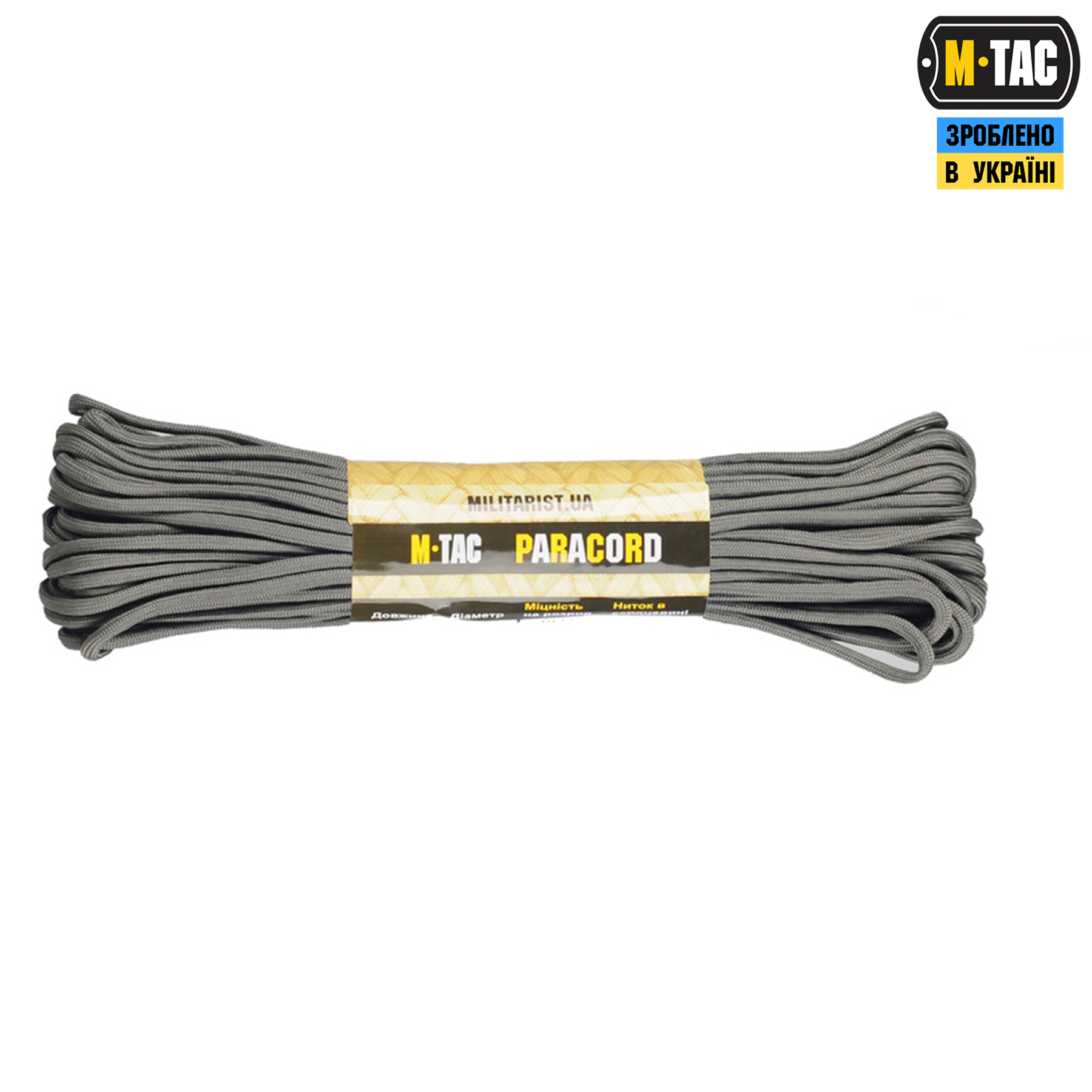 M-Tac паракорд 550 type III – це нейлоновий шнур, який складається із зовнішнього обплетення (велика кількість переплетених волокон) та осердя (кілька нейлонових ниток, переплетених між собою), що забезпечує його міцність і невелику вагу.