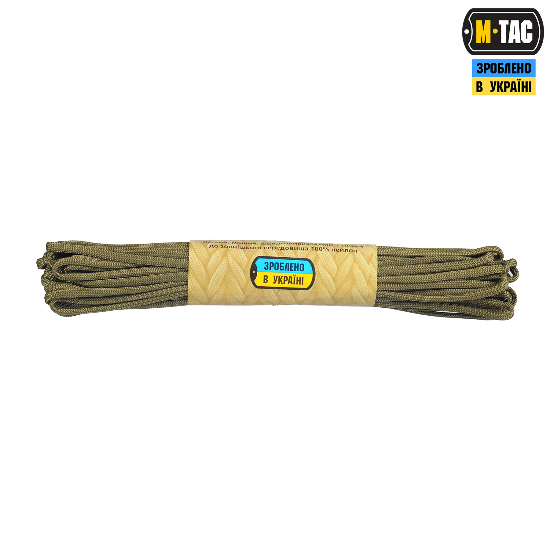 M-Tac паракорд Survival – це нейлоновий шнур, що складається з зовнішнього обплетення (велика кількість переплетених волокон) і сердечника (кілька нейлонових ниток, переплетених між собою), що забезпечують його міцність і невелику вагу. Начинка моделі SURVIVAL це 7 поліамідних ниток (550-paracord) а також джут і плетений рибальський шнур.