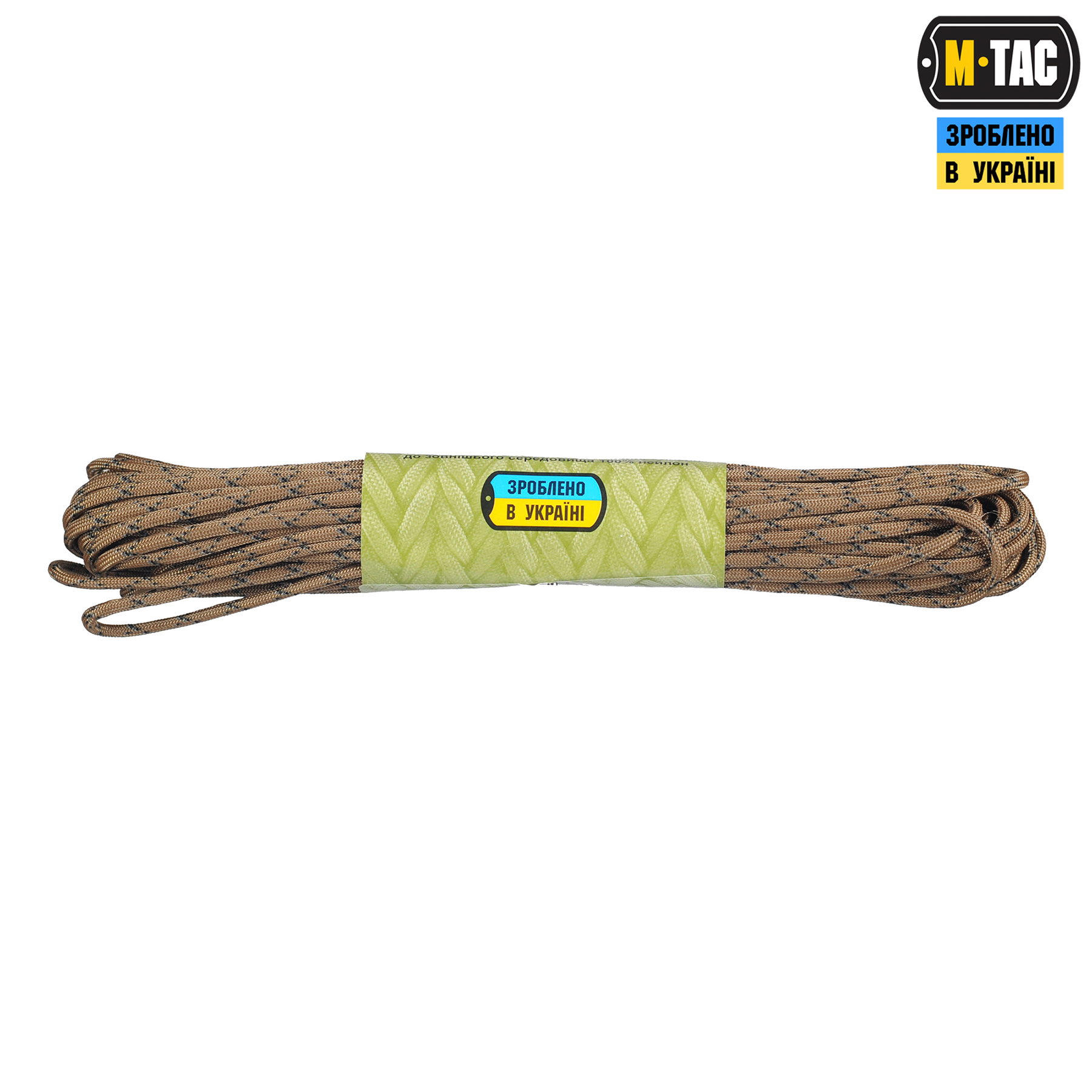 M-Tac паракорд Survival – це нейлоновий шнур, що складається з зовнішнього обплетення (велика кількість переплетених волокон) і сердечника (кілька нейлонових ниток, переплетених між собою), що забезпечують його міцність і невелику вагу. Начинка моделі SURVIVAL це 7 поліамідних ниток (550-paracord) а також джут і плетений рибальський шнур.