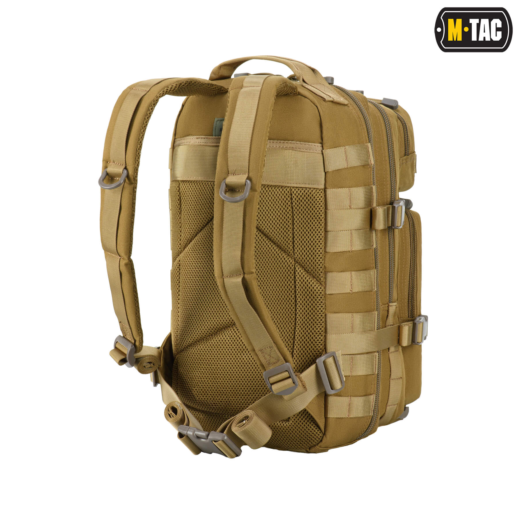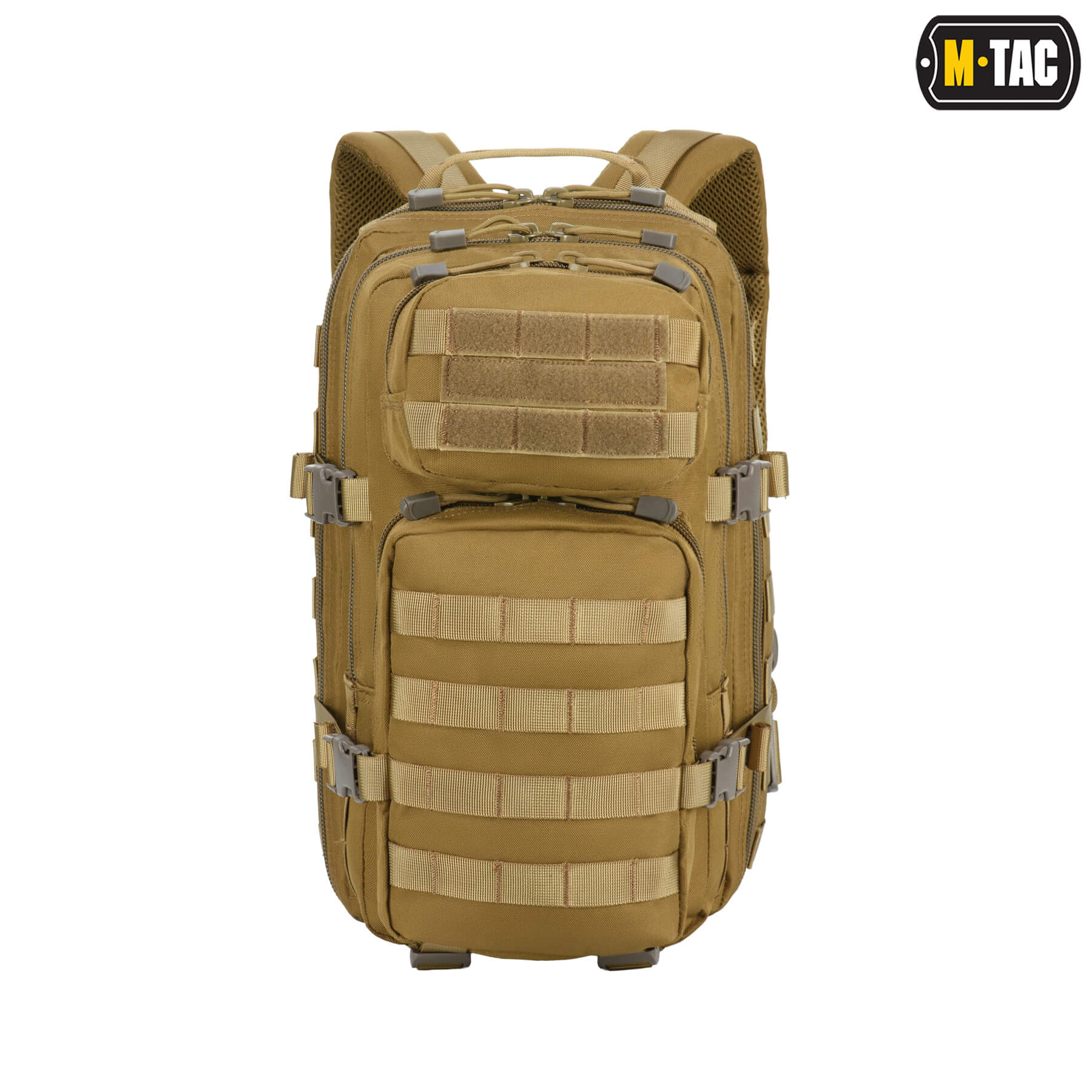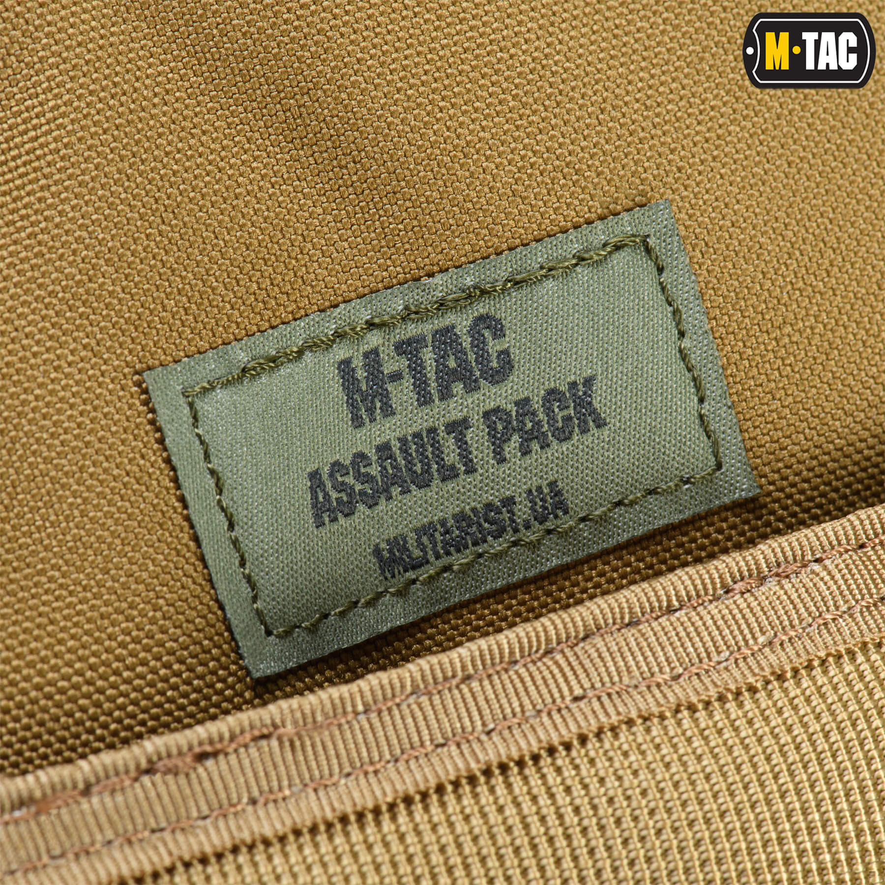M-Tac рюкзак Assault Pack ви можете використовувати в якості міського рюкзака або ж рюкзака для невеликих походів. Обладнаний системою кріплення Molle та має два великих основних відділи на блискавках. Спереду розташовані дві додаткові кишені також на блискавці. Ремені, для перенесення рюкзака за спиною, з мяким наповнювачем і регулюються по довжині.