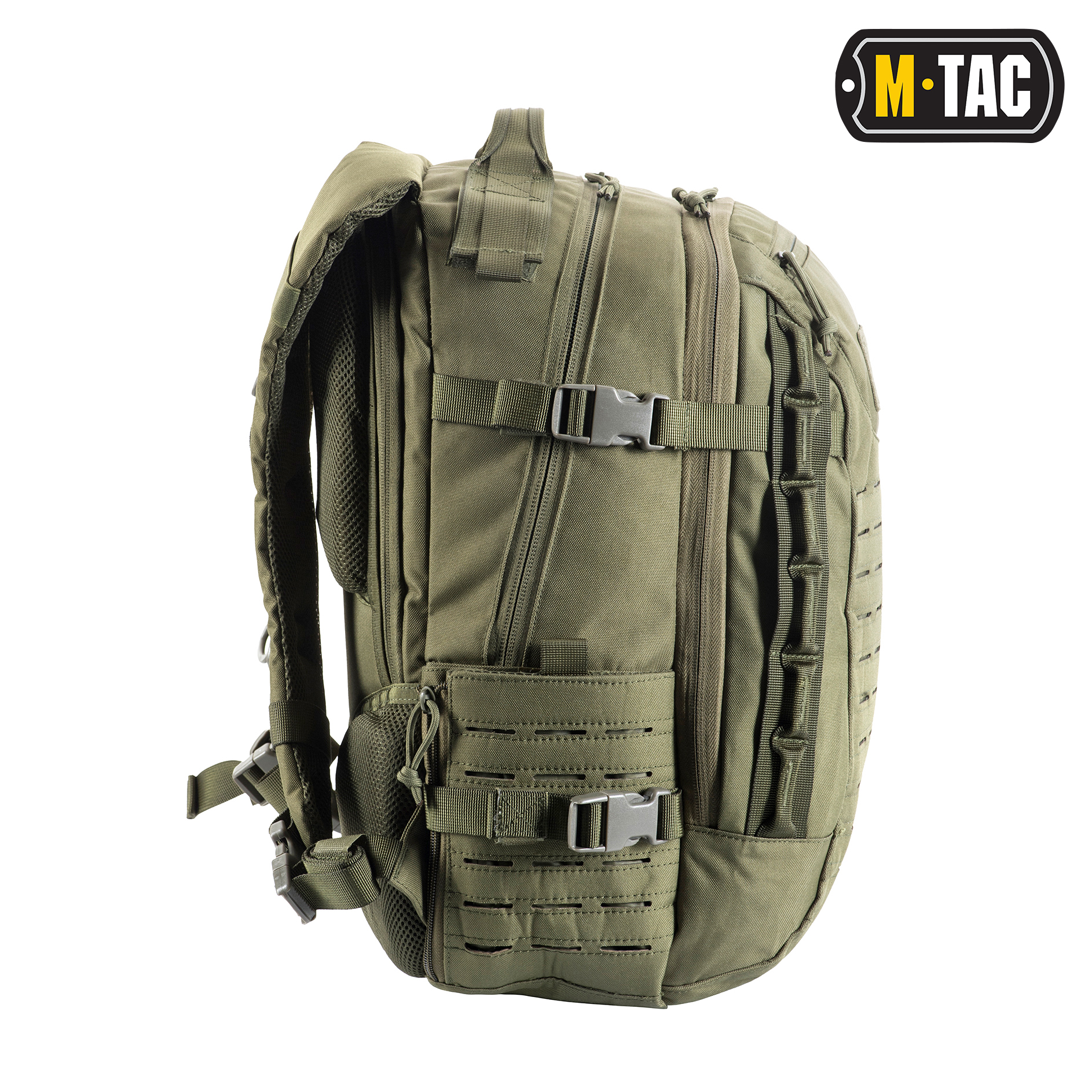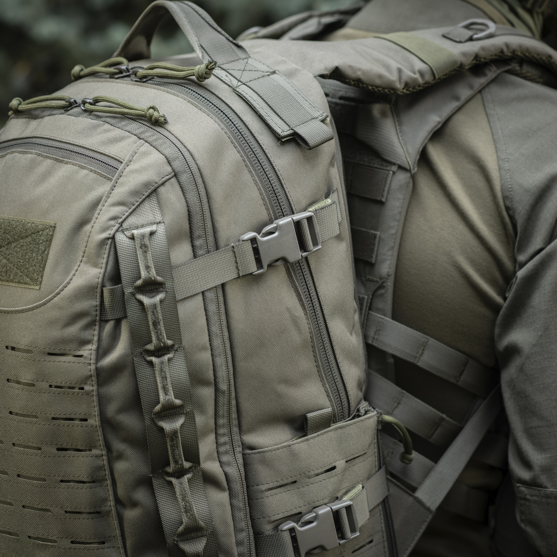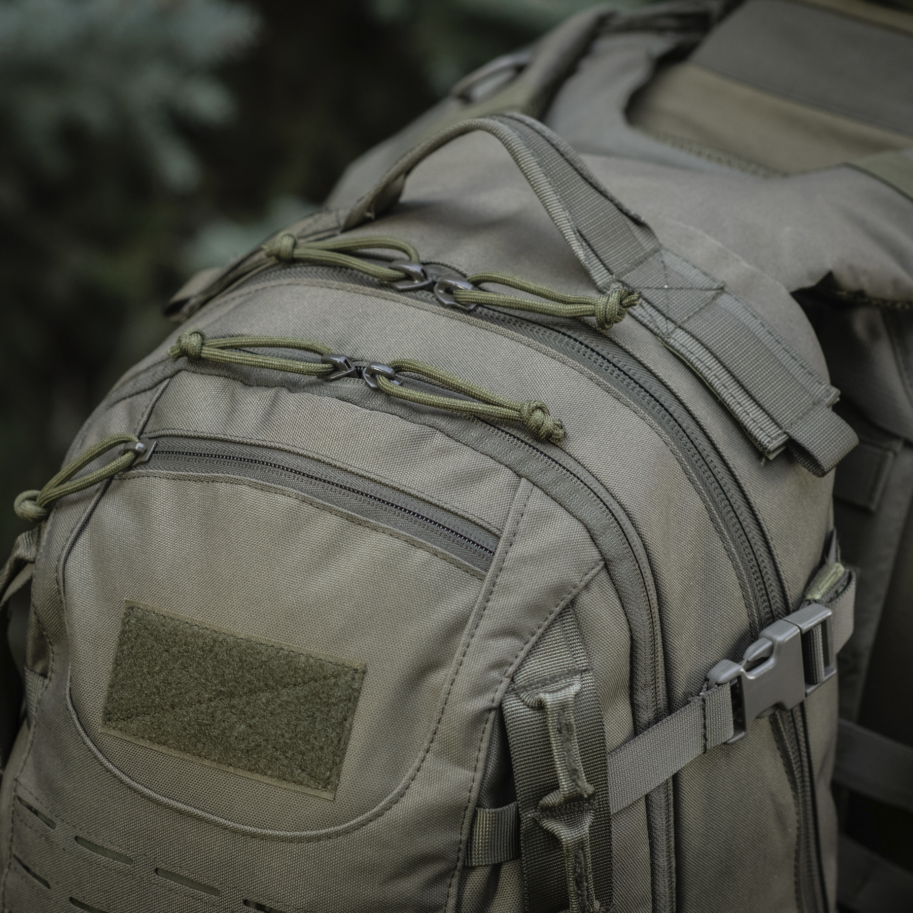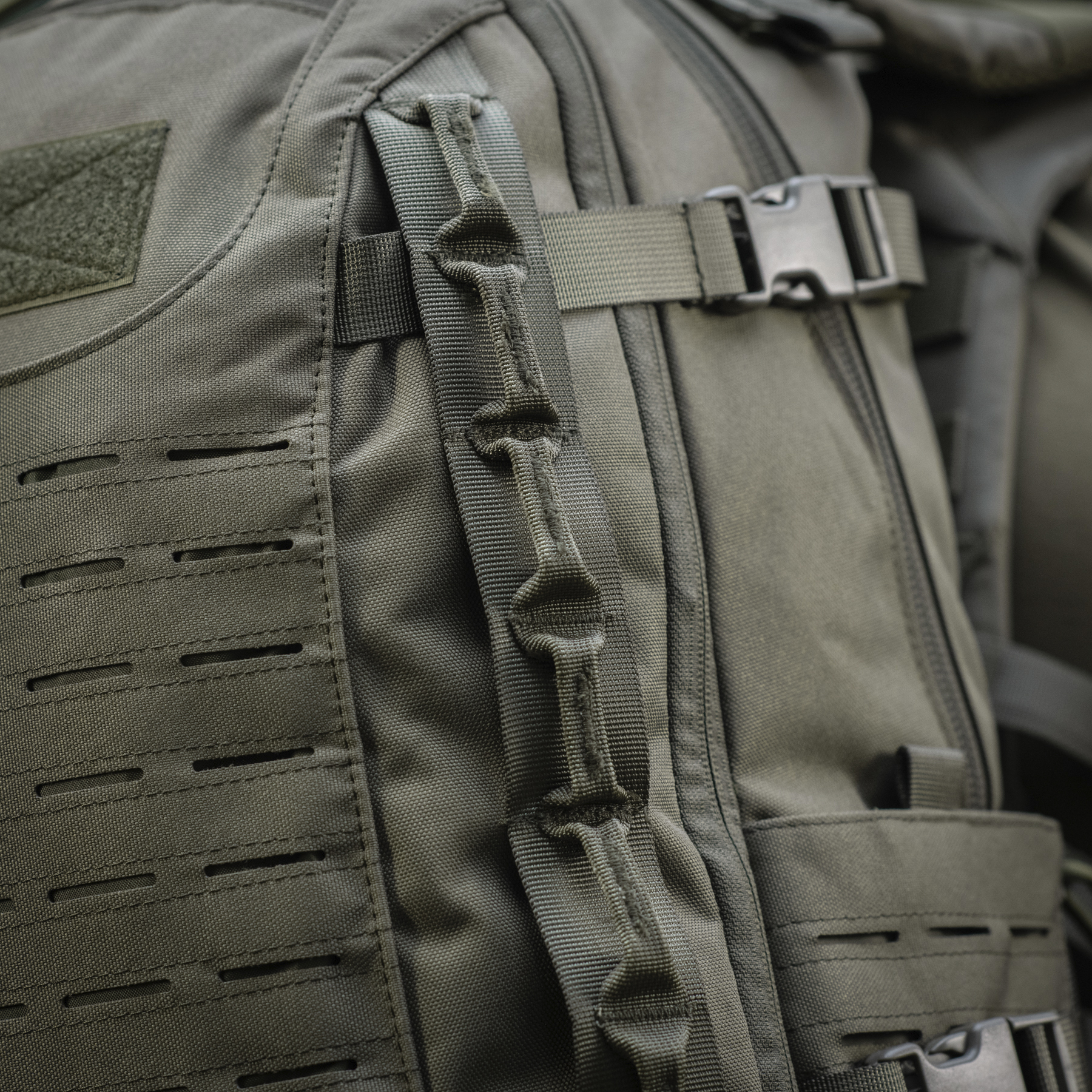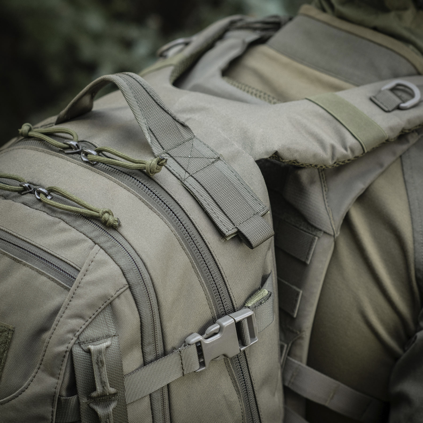 Польовий рюкзак Intruder Pack від бренду M-Tac – це універсальний патрульний рюкзак, який ідеально підійде як професійним військовим і правоохоронцям, так і мисливцям, рибалкам чи мандрівникам. Спинка обладнана демпферними подушками з пінним наповнювачем, що забезпечує доступ повітря і дозволяє зручно розташувати рюкзак. Лямки також обладнані пінним наповнювачем. Рюкзак фіксується грудною стяжкою. Посилені ручки для транспортування рюкзака. Кишеня для документів обладнана велкро-панеллю і знімною панеллю на велкро, яка з легкістю розміщує в собі різні аксесуари, а саме: ручки, олівці, невеликі лінійки, тактичний ліхтарик, ніж, ножиці і багато іншого.