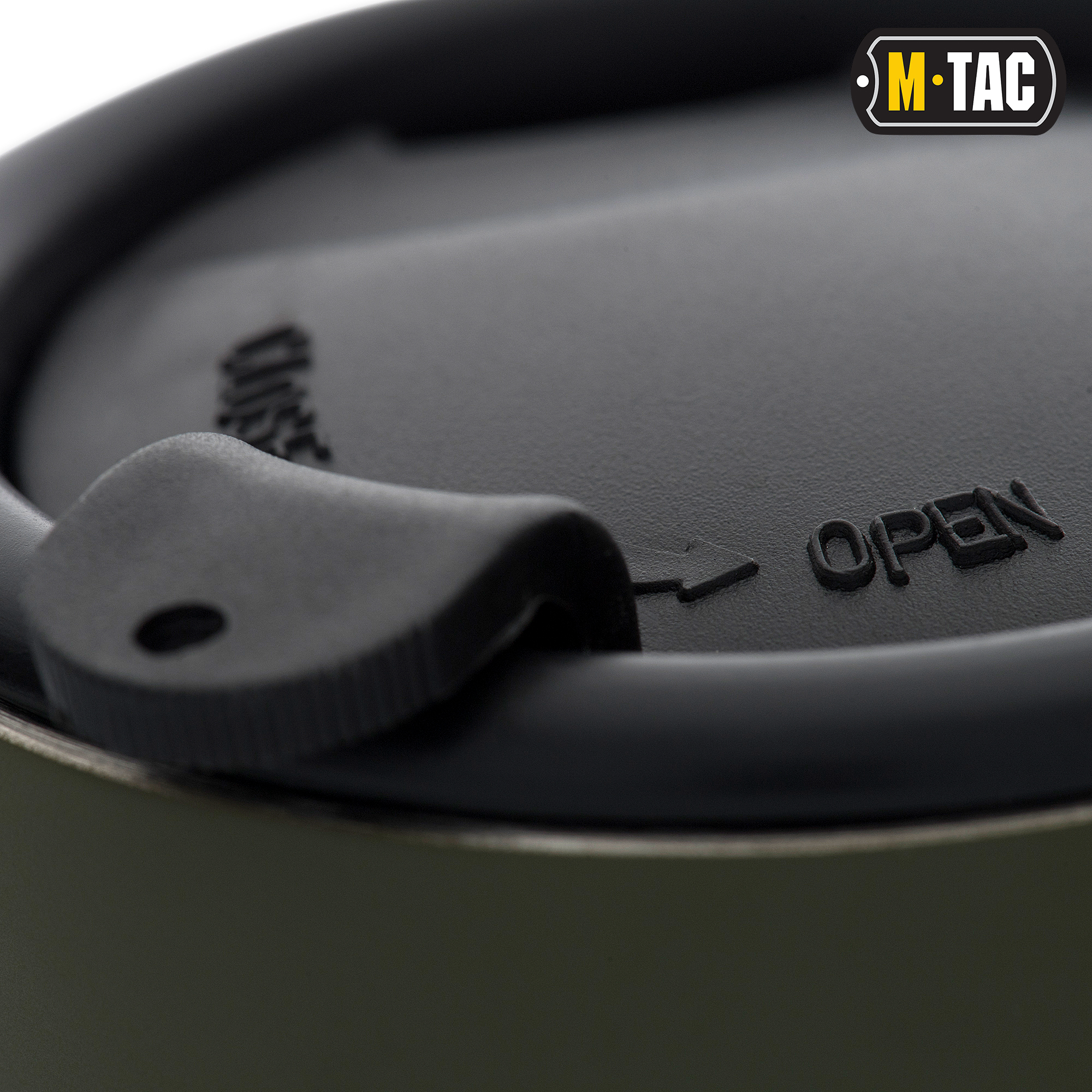 M-Tac термокухоль виготовлений з нержавіючої сталі, кухоль має жорстку і міцну конструкцію. Двошарові стінки, герметичний прошарок і вакуум не дозволяють напою вистигати, а зовнішнім стінкам нагріватись. Тому опіків з таким кухлем можна не боятися.Кришка має спеціальні отвори для пиття. Це дозволяє пити улюблені напої, не знімаючи кришку і напій довше зберігає температуру. Додамо ще, що кухоль має порошкове покриття зовнішніх стінок і це дозволяє позбавиться відблисків, що буде цікаво як мисливцям, так і військовим.