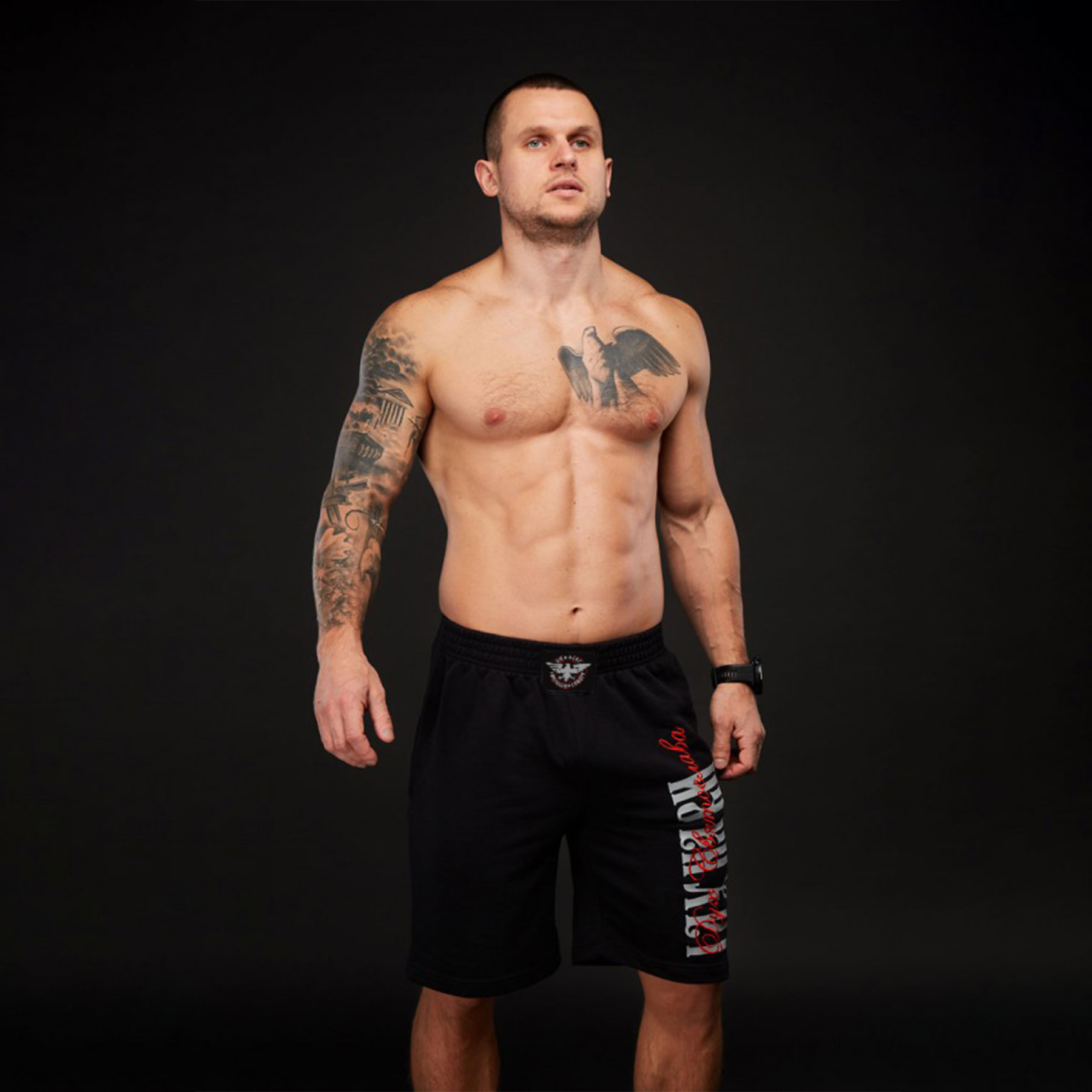 <div><font size="2"> <br /> </font></div> <div><font size="2"> Тренувальні спортивні шорти. Матеріал – високоякісний футер без начісу. Мають класичний дизайн. Обладнані двома врізними кишенями. На поясі фіксуються широкою резинкою. В якості декору – напис Іду НА ВИ з вишивкою поверх напису ДУХ СВЯТОСЛАВА</font><span style="font-size: small;">.</span></div>