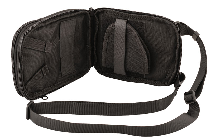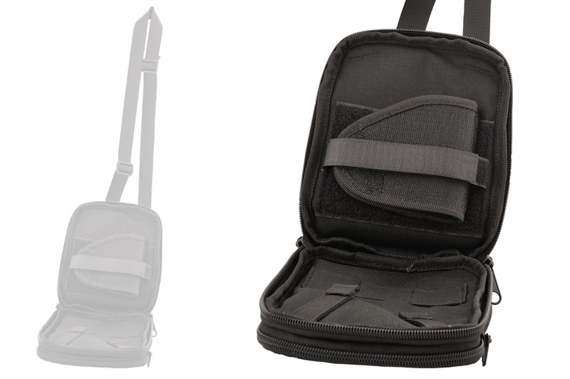 Сумка-кобура, основне призначення якої – це приховане носіння пістолета з додатковими магазинами. Матеріал виготовлення -нейлон. Має три відділення. Два з яких під різноманітні дрібниці і документи. І основне відділення, в якому є спеціальні кріплення для пістолета, трьох запасних магазинів і знімної кобури на велкро. Розміри 20 * 14 см.