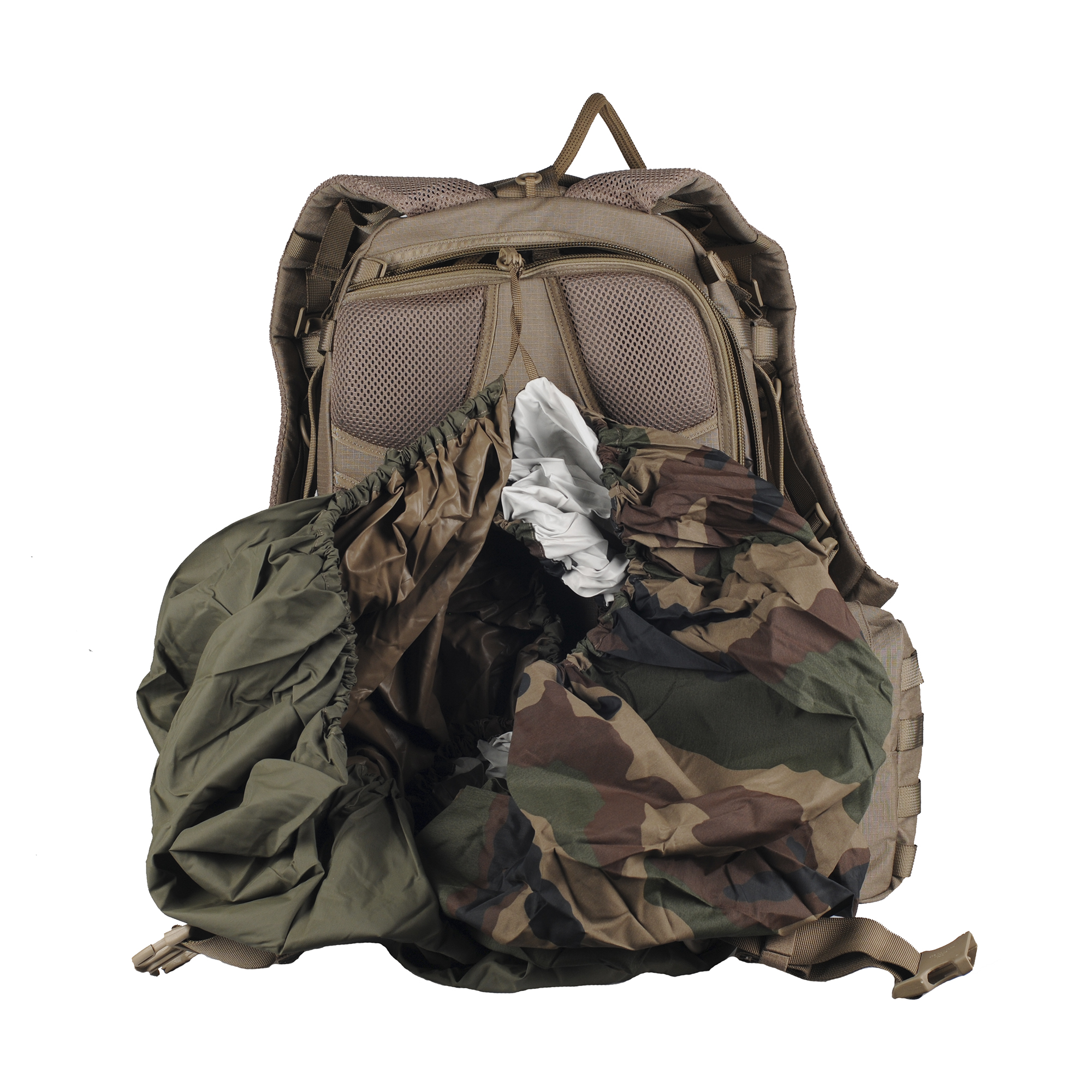 Французький рюкзак з гідратор Musette TTA Modele 2009 рюкзак у якого кишені і боки рюкзака обладнані стропами MOLLE. Спинка обладнана демпферними подушками з пінним наповнювачем що дає доступ повітря до спини і дозволяє комфортно розташувати рюкзак. Наповнювач можна замінити на інший. Лямки також обладнані пінним наповнювачем. Рюкзак фіксується грудною стяжкою і поясним ременем, який при бажанні можна зняти. Ручки для транспортування рюкзака зверху і з боків, посилено прошиті.