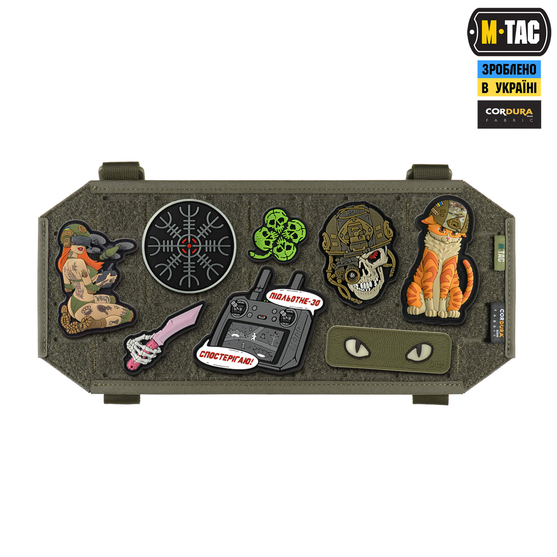 M-TAC ВЕЛКРО-ПАНЕЛЬ НА АВТОМОБІЛЬНИЙ СОНЦЕЗАХИСНИЙ ВІЗОР ELITE – допоможе зручно розмістити улюблені нашивки та патчі у вашому авто.  Панель фіксується за допомогою нейлонових строп із велкро-липучками, а MOLLE-система забезпечує варіативність кріплення до різних сонцезахисних візарів (шляхом переміщення кріплень). Передня частина панелі виконана з велкро полотна, на яке нашивки легко чіпляються та надійно тримаються (нашивки на зображенні – є демонстрацією можливого розташування, в комплекті не йдуть).  Задня частина виконана з Cordura 500D та Cordura Squadron – міцних матеріалів, які забезпечують захист від механічних пошкоджень та тривалий термін експлуатації. Для підвищення зносостійкості, внутрішня частина панелі виконана з ABS пластику.