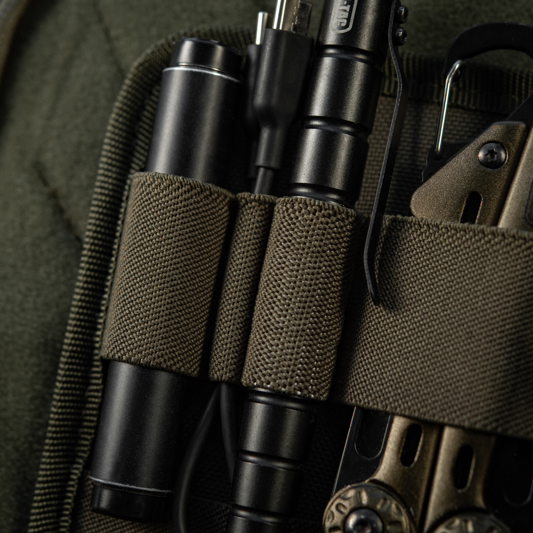 Модульна вставка для ключів від бренду М-Тас допоможе раціонально організувати простір у Вашому рюкзаку або сумці. Виготовлена з Cordura 1000D – надміцної тканини, стійкої до стирання та високих навантажень. Поверх модульної вставки нашиті еластичні резинки для кріплення ліхтаря, ножа, ручки, газового балончика та інших корисних речей. Сітчаста кишеня відмінно підійде під мультитул чи Powerbank. Петелька у верхній частині панелі дозволить пристебнути ключі або інші цінні предмети. Вставка кріпиться на внутрішні стінки рюкзака або сумки за допомогою велкро липучки. Легка й компактна модульна кишеня стане в пригоді всім, хто любить тримати свій EDC набір у швидкому доступі.Завдяки своїм унікальним якостям Cordura широко застосовується в тактичному спорядженні військових, сил правопорядку і сил спеціального призначення. В основному це матеріали з лінійною густиною 1000D і 500D. Лінійна щільність – це співвідношення маси нитки матерії і її довжини. Вимірюється в деньє (denier). Ця одиниця виміру в основному застосовується для нейлонових виробів. Відповідно – чим вище цей показник, тим щільніше і важче тканина. Фізико – технічні тканини CORDURA 1000D дуже високі, розривне навантаження становить близько 3000Н, роздирання – близько 150Н. Стійкість до стирання більше 50000 циклів. Використовується для одягу, чохлів, підсумків. Чи то тактичний рюкзак, підсумки або куртка. Вироби, пошиті з матеріалів CORDURA, безсумнівно, пройдуть випробування часом і відстанню. CORDURA – це міцність, надійність і стиль. За показниками міцності вона поза конкуренцією. Завдяки своїм унікальним якостям Cordura широко застосовується в тактичному спорядженні військових, сил правопорядку і сил спеціального призначення. В основному це матеріали з лінійною густиною 1000D і 500D. Лінійна щільність – це співвідношення маси нитки матерії і її довжини. Вимірюється в деньє (denier). Ця одиниця виміру в основному застосовується для нейлонових виробів. Відповідно – чим вище цей показник, тим щільніше і важче тканина. Фізико – технічні тканини CORDURA 1000D дуже високі, розривне навантаження становить близько 3000Н, роздирання – близько 150Н. Стійкість до стирання більше 50000 циклів. Використовується для одягу, чохлів, підсумків. Чи то тактичний рюкзак, підсумки або куртка. Вироби, пошиті з матеріалів CORDURA, безсумнівно, пройдуть випробування часом і відстанню. CORDURA – це міцність, надійність і стиль. За показниками міцності вона поза конкуренцією.