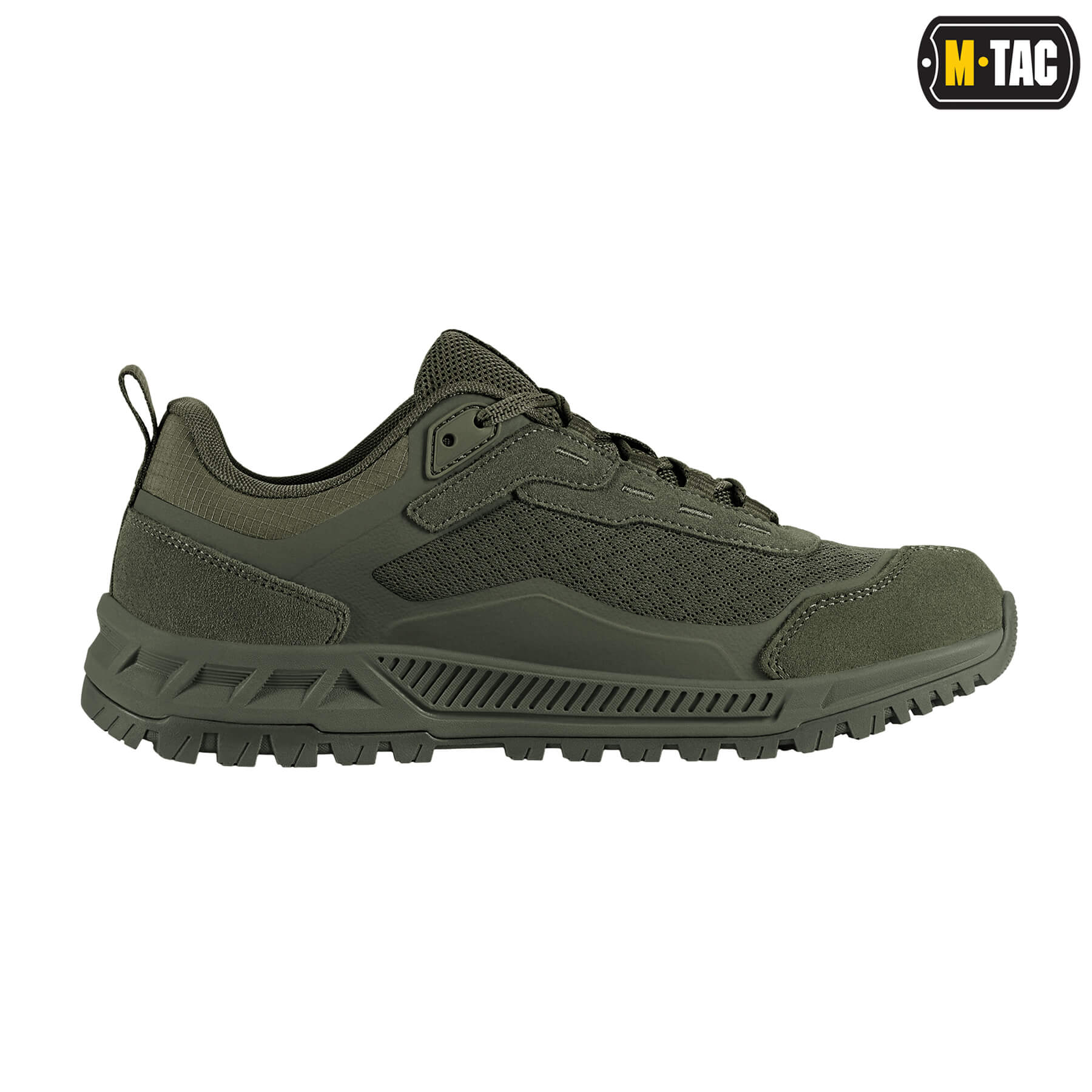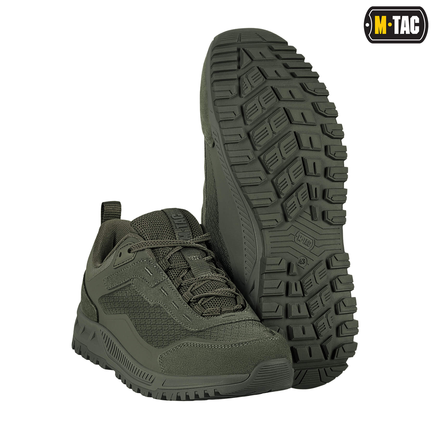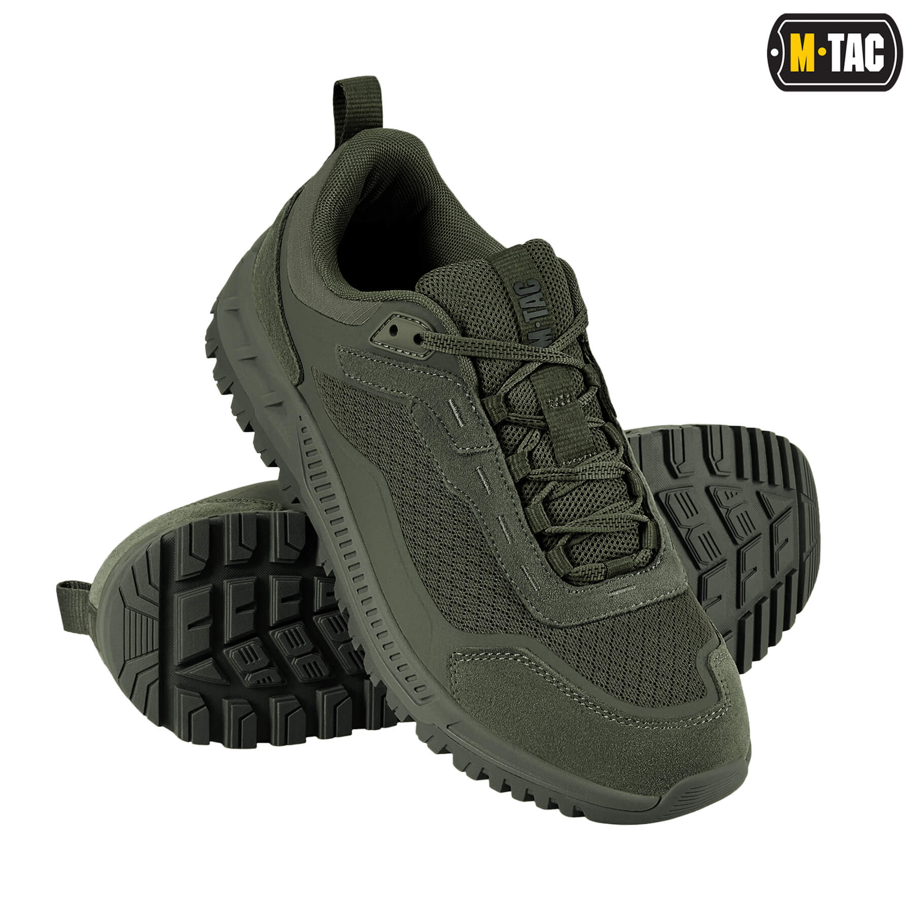 M-TAC КРОСІВКИ SHOOTER – легкі тактичні кросівки, які вдало поєднують якісні матеріали, ергономічний дизайн та високі експлуатаційні характеристики. Головною особливістю кросівок є протектор підвищеного зчеплення з ламелями (додатковими ребрами на шипах підошви), які покращують стабільність під час руху по різних типах поверхні. Верх кросівок виготовлений зі спліт-шкіри (натурального матеріалу, отриманого з нижнього шару шкіри), TPU-плівки та поліестрової сітки. У комбінації вони забезпечують високу зносостійкість та повітропроникність, при цьому не пропускаючи пил та бруд всередину кросівок. Підкладка виготовлена з поліестеру – легкого у догляді, зносостійкого та повітропроникного матеріалу. Комфорт під час високої фізичної активності забезпечує легка, пориста устілка, яка чудово поглинає ударні навантаження та не деформується з часом. M-Tac кросівки Shooter оснащені двокомпонентною підошвою, виготовленою із файлона (phylone) та гуми (rubber), яка гарантує: ефективну амортизацію та зменшення ударного навантаження; надійне зчеплення з різними типами поверхонь; стійкість до пошкоджень та тривалий термін експлуатації; легкість та високу стабільність під час активних фізичних навантажень. Матеріали верху: спліт-шкіра, TPU-плівка, поліестерова сітка. Підошва: двокомпонентна підошва (файлон та гума); Підкладка: поліестер; Вага пари: 760 г.