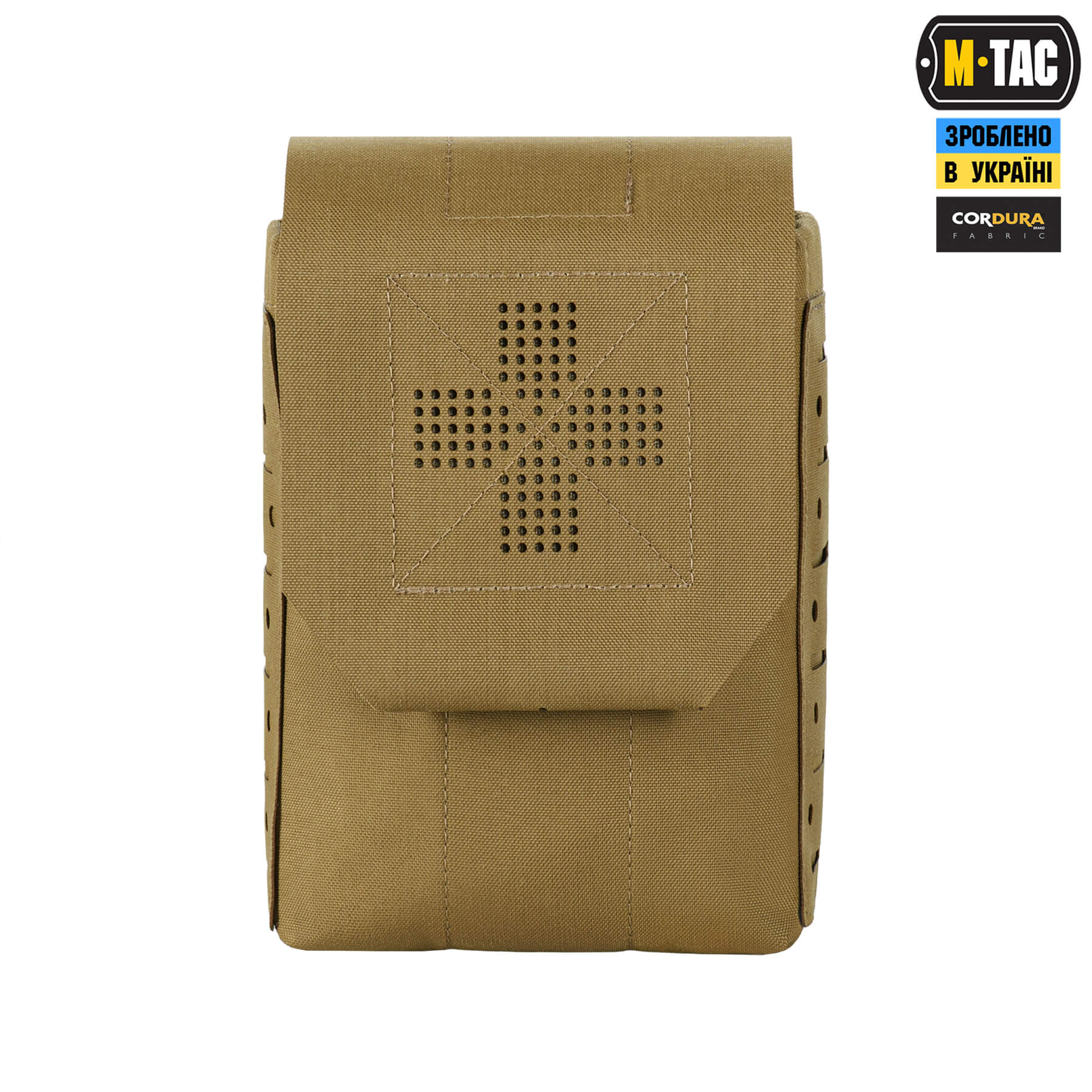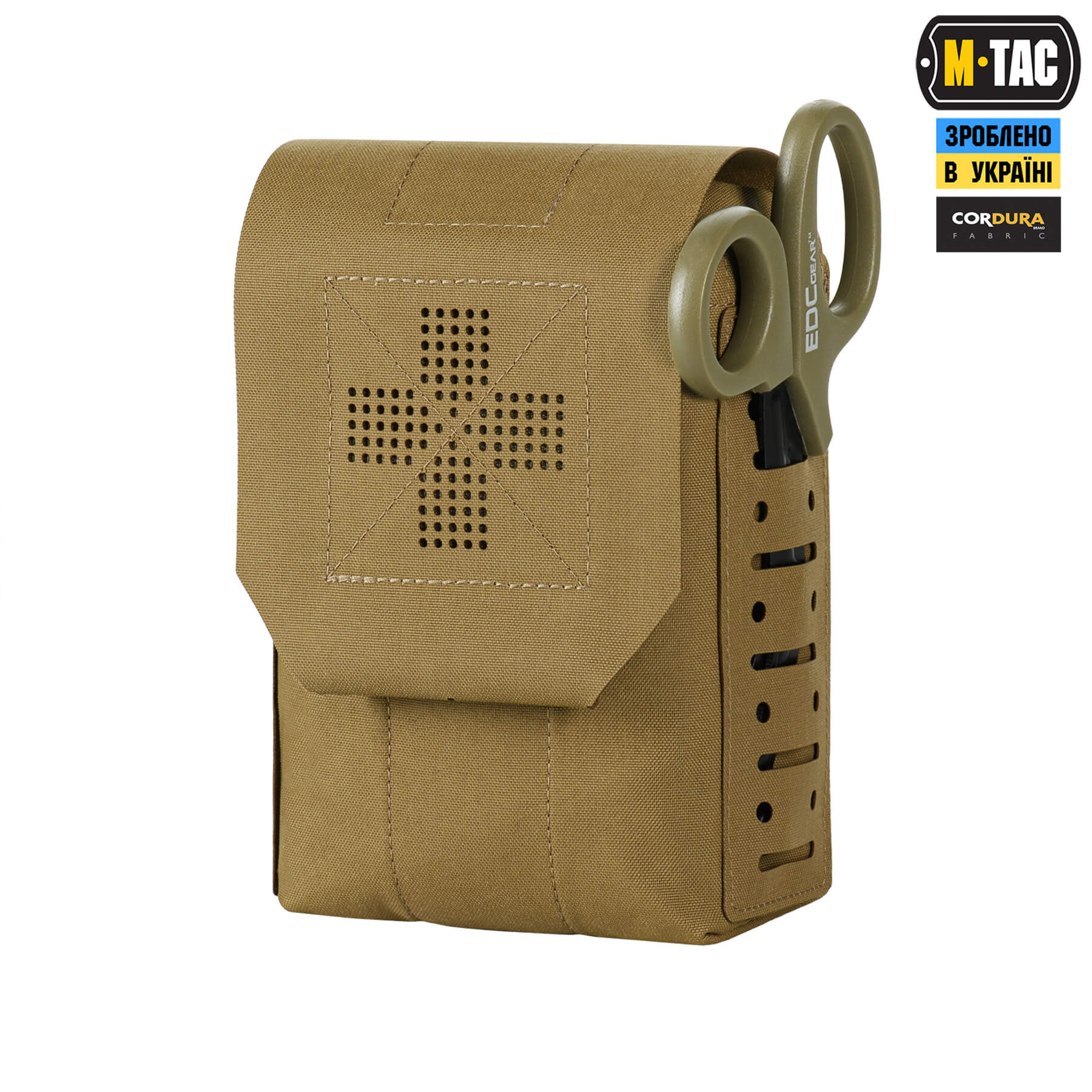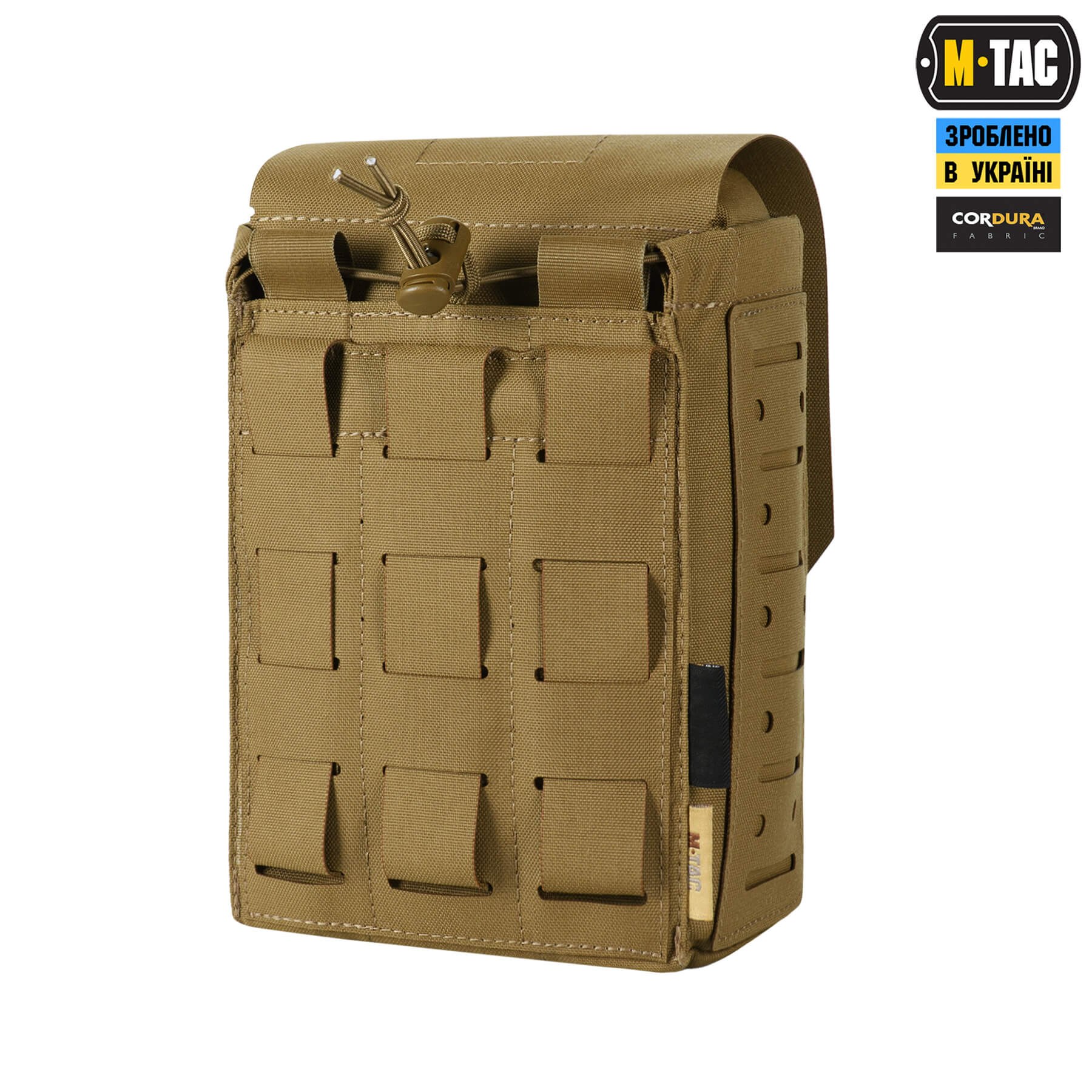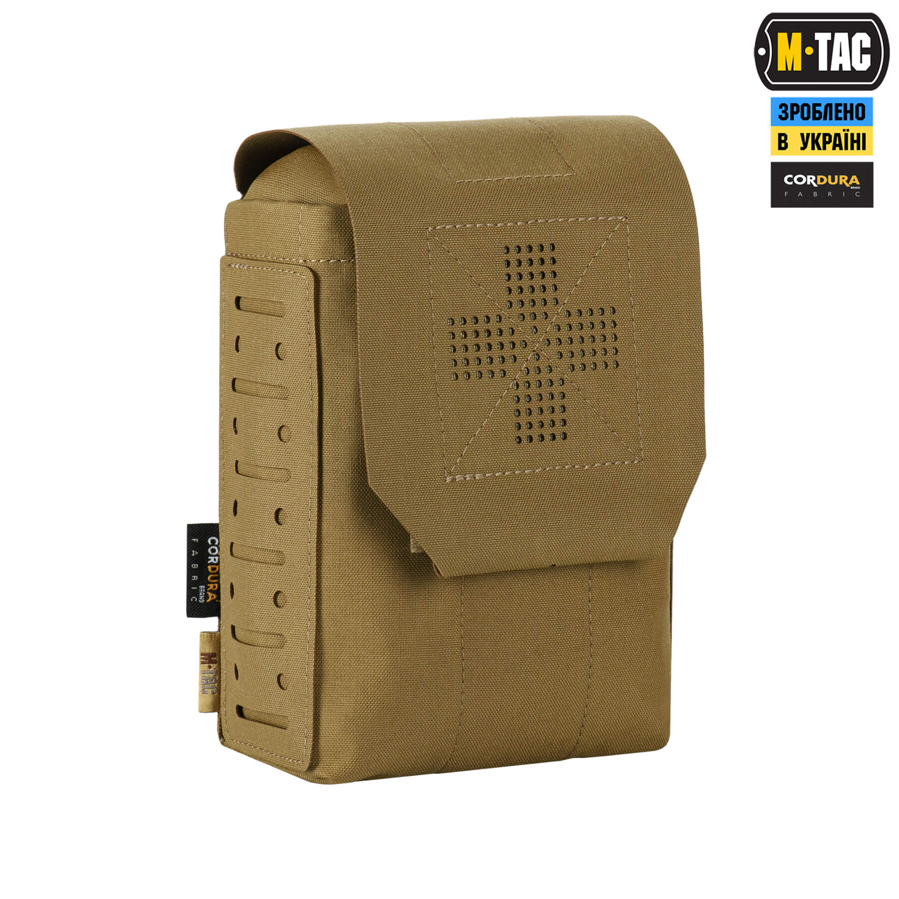 Новий M-TAC ПІДСУМОК МЕДИЧНИЙ ВЕРТИКАЛЬНИЙ LARGE GEN.II ELITE стане відмінним доповненням вашого спорядження та дозволить розмістити усі необхідні медичні засоби. Основною відмінністю даного підсумка від попередньої генерації – є MOLLE панелі, розташовані на його бічних частинах. Вони підійдуть для розміщення підсумку для турнікета, або ж кріплення медичних ножиць.  Підсумок медичний вертикальний Large Gen.II Elite складається з двох частин: основного підсумка та внутрішньої аптечки-органайзера під IFAK (індивідуальну аптечку першої допомоги), що має вертикальний метод вилучення. Зовнішній підсумок та внутрішній органайзер виготовлений із Cordura 500D – міцного матеріалу, стійкого до стирання та високих навантажень. Внутрішні бічні стінки обладнані нейлоновою стропою, завдяки якій підсумок добре тримає форму. Додатковим фіксуючим елементом є стяжка, яка дає змогу надійно утримувати аптечку. Підсумок кріпиться до спорядження за допомогою MOLLE інтерфейсу, виконаного за технологією Laser Cut. Внутрішній органайзер обладнаний клапаном, що кріпиться до зовнішнього підсумка, й водночас виконує роль фіксації та допомагає швидко вилучити аптечку в разі необхідності. Закривається за допомогою велкро липучок за принципом пенала. Всередині аптечки розташовані три відсіки та двоступінчасті еластичні резинки для розміщення медикаментів.CORDURA — це надміцний нейлоновий матеріал, розроблений для екстремальних умов експлуатації. Відзначається високою стійкістю до стирання, розривів і впливу вологи. Широко використовується у виробництві тактичного спорядження, адже забезпечує тривалий термін служби виробів в умовах інтенсивного використання. CORDURA — це надміцний нейлоновий матеріал, розроблений для екстремальних умов експлуатації. Відзначається високою стійкістю до стирання, розривів і впливу вологи. Широко використовується у виробництві тактичного спорядження, адже забезпечує тривалий термін служби виробів в умовах інтенсивного використання.