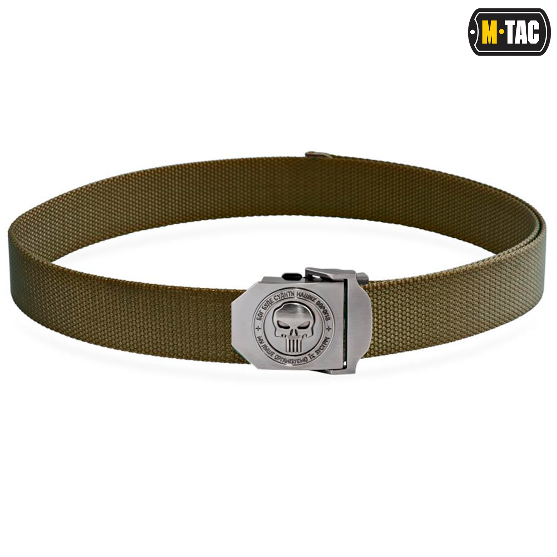M-Tac поясний (брючний) ремінь в стилі мілітарі. Досить зручний ремінь для носіння на кожен день хоч під військові штани, хоч під джинси або шорти. Регулюється за рахунок зручної у використанні пряжки із зображенням емблеми Карателя (Punisher) і написом: Бог буде судити наших ворогів, ми лише організуємо їх зустріч. Ремінь чудово підійде військовим, працівникам правоохоронних органів, охоронцям, мисливцям, туристам, рибалкам і просто любителям військової тематики.
