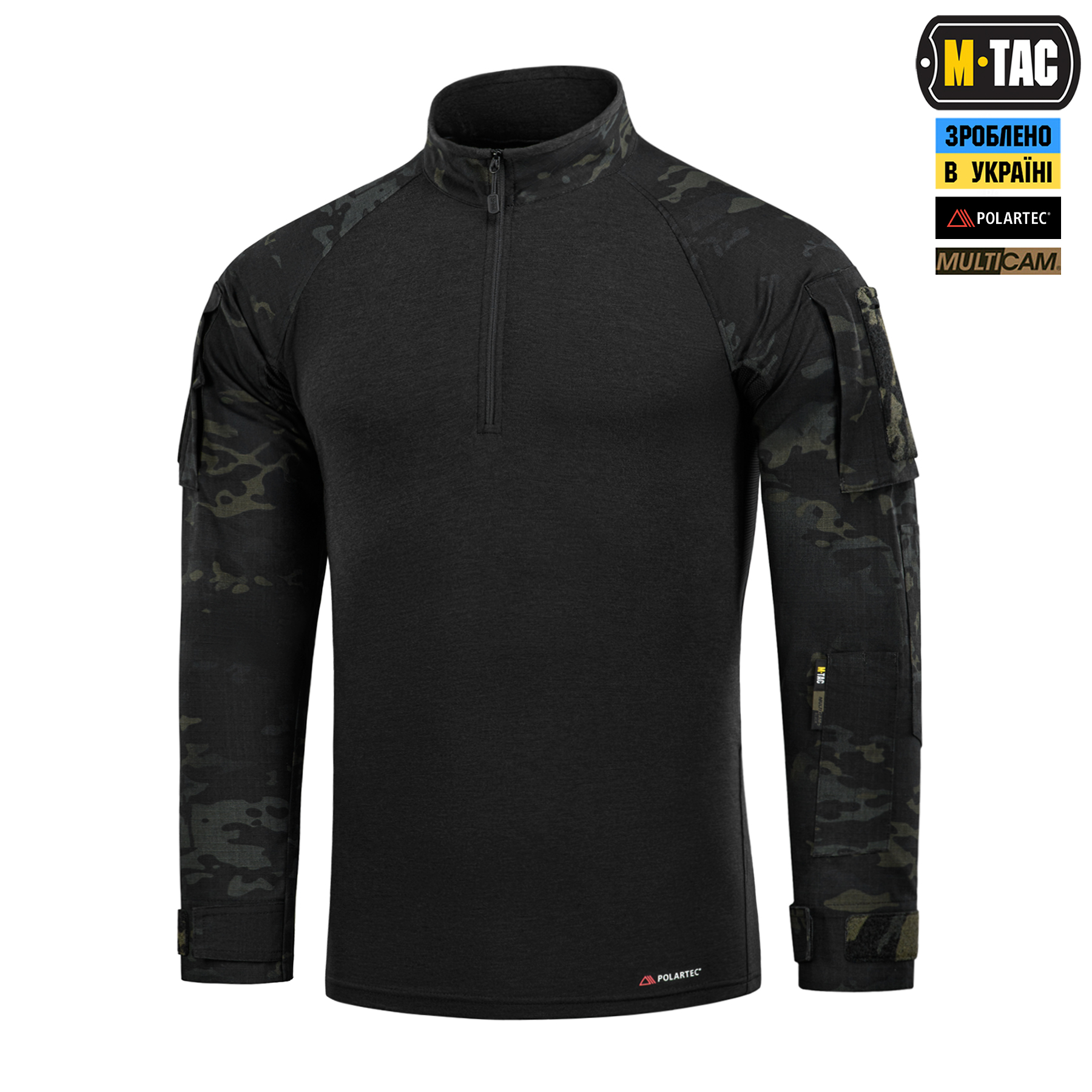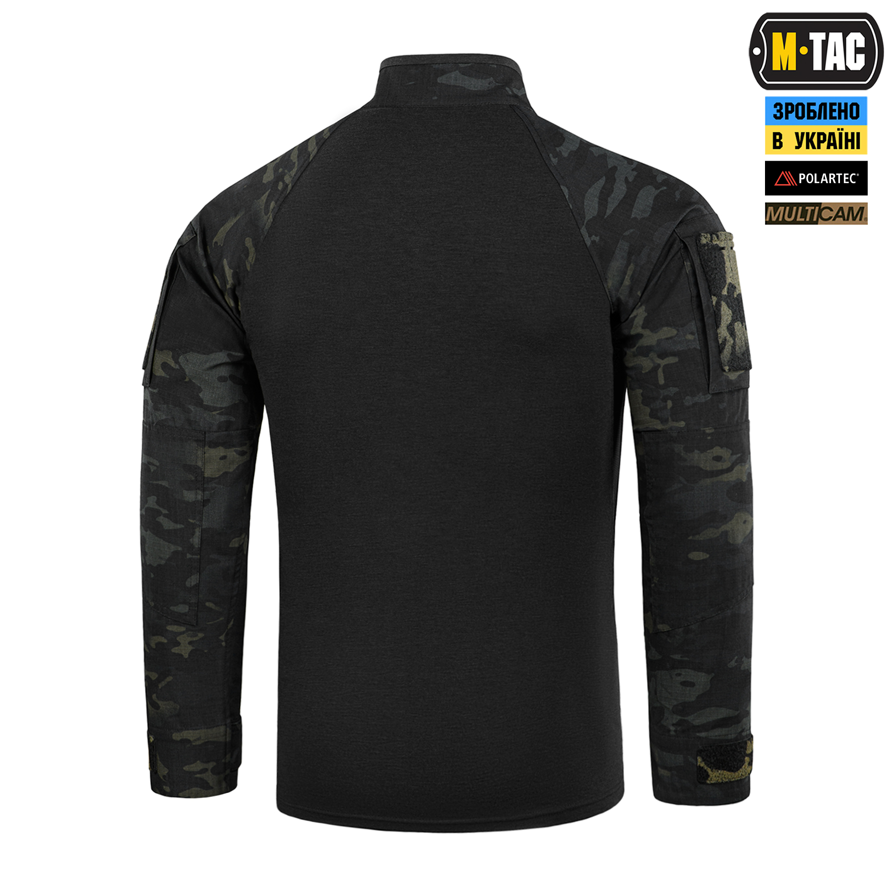 M-TAC СОРОЧКА БОЙОВА ЛІТНЯ GEN.II PRO NYCO EXTREME MULTICAM BLACK/BLACK поєднує у собі високоякісні матеріали, новітні виробничі технології та продуманий функціонал. Спинка та торс сорочки виготовлені з трикотажного матеріалу Polartec fire resist (модакріл, ліоцелль, спан). Найбільшу відсоткову частку в складі цього матеріалу займає модакріл. Тканини виготовлені з включенням цього синтетичного волокна є стійкими до вогню та, відповідно, загоряння. В поєднанні з іншими компонентами, що є в складі матеріалу Polartec fire resist, утворюється унікальна комбінація вогне- та водостійкості, мякості та еластичності. Рукава та комір пошиті з міцної американської тканини NYCO Extreme у патерні Black Multicam від компанії Brookwood (нейлон, бавовна). Цей легкий матеріал приблизно втричі міцніший на розрив, в 10 разів більш повітропроникний і швидше висихає порівняно зі звичайною тканиною NYCO. Конструктори бренду під пахвами додали вставки із сітки для покращення вентиляції та відведення вологи. Також на рукавах дизайнери передбачили прикриті клапаном вертикальні кишені для зберігання цінних речей. Велкро панелі оснащені спеціальними отворами під хімсвітло та інше канцелярське приладдя. На лівому рукаві є додаткові кишені для ручок. Тактична сорочка здатна значно покращити комфорт та терморегуляцію при носінні бронежилетів або розвантажувальних систем. Дана модель зручна у використанні як у теплу, так і в прохолодну пору року. Матеріали: NYCO Extreme у патерні Black Multicam; Polartec fire resist (модакріл, ліоцелль, спан) Фурнітура: YKK Особливості: Прикриті клапаном нарукавні кишені з вертикальним входом. Вставки з сітки під руками для оптимальної терморегуляції. Велкро панелі з відсіками під хімсвітло.
