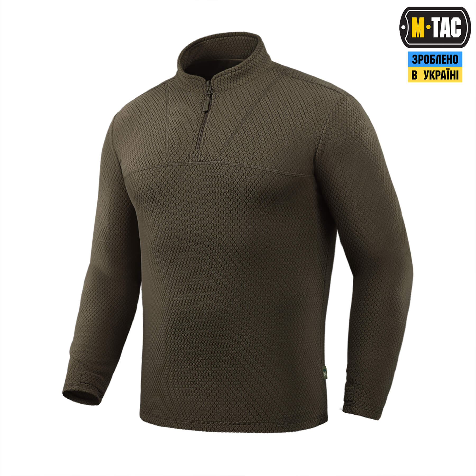 M-TAC ТЕРМОСОРОЧКА ФЛІС DELTA LEVEL 2 HEX – другий шар термобілизни, створений для ефективного збереження тепла та стабілізації мікроклімату тіла під час активних фізичних навантажень. Пошита з якісного флісу (100% поліестер), з рельєфною шестикутною структурою, який забезпечує хорошу терморегуляцію, швидко відводить вологу та запобігає деформації виробу під час тривалого використання. Оснащена блискавкою до середини грудей та прорізами для великих пальців на рукавах, що спрощують її надягання. Комір-стійка забезпечує додатковий захист шиї від холоду та вітру, а анатомічний крій не обмежує рухи та гарантує максимальний комфорт під час активної експлуатації. M-Tac термосорочка фліс Delta Level 2 Hex у поєднанні з