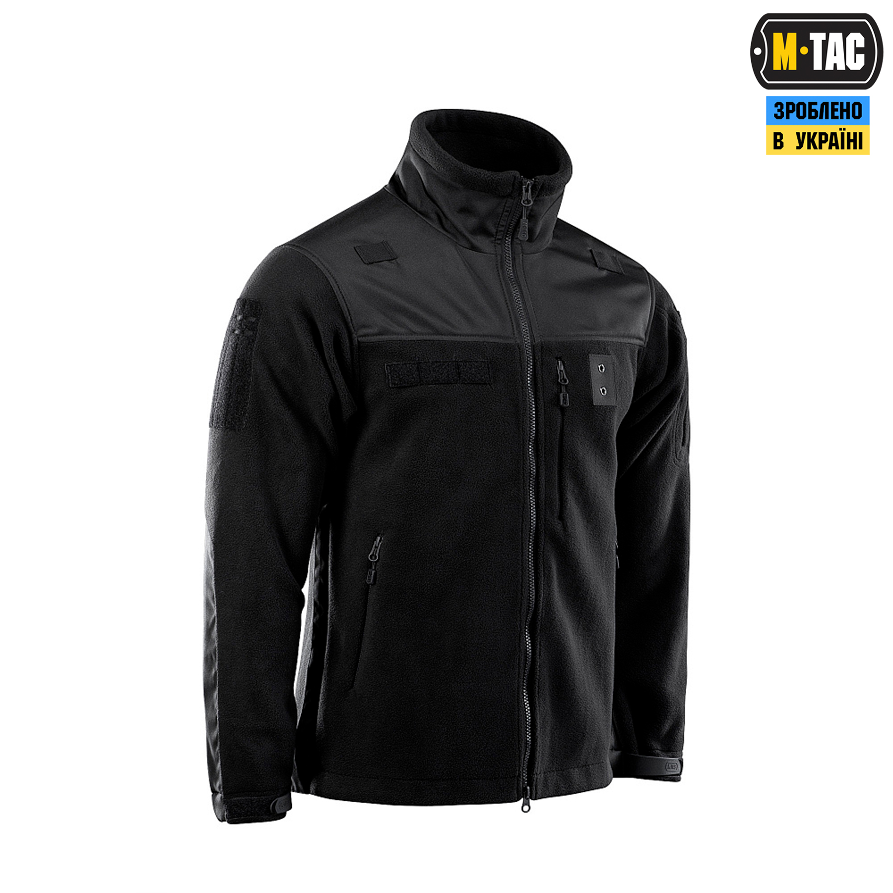 Поліцейська версія флісової куртки Alpha від бренду M-Tac. Розрахована на використання замість третього шару ECWCS. Матеріали виробу – фліс, 100% поліестер (оксфордський нейлон), ламінована поліефірна сітка. На плечах і рукавах нейлонові вставки. Куртка застібається на двосторонню пластикову блискавку. Обладнана пятьма кишенями. На рукавах велкро-панелі для кріплення ID нашивок, а в манжетах нейлонові вітрозахисні вставки. Підкладка, із ламінованої поліефірної сітки, мяка і приємна на дотик.