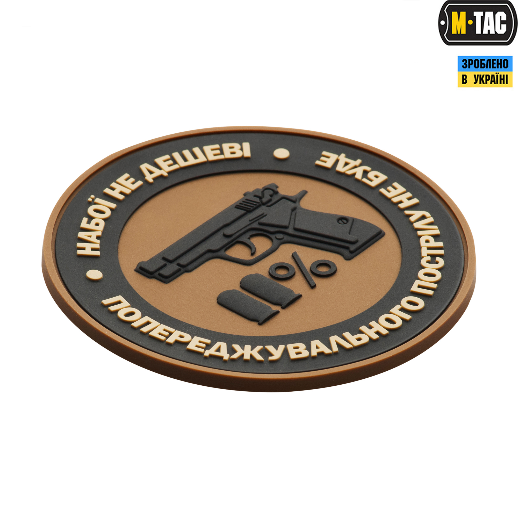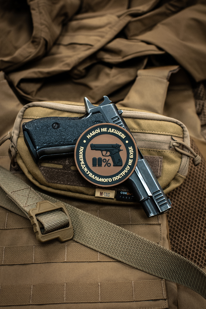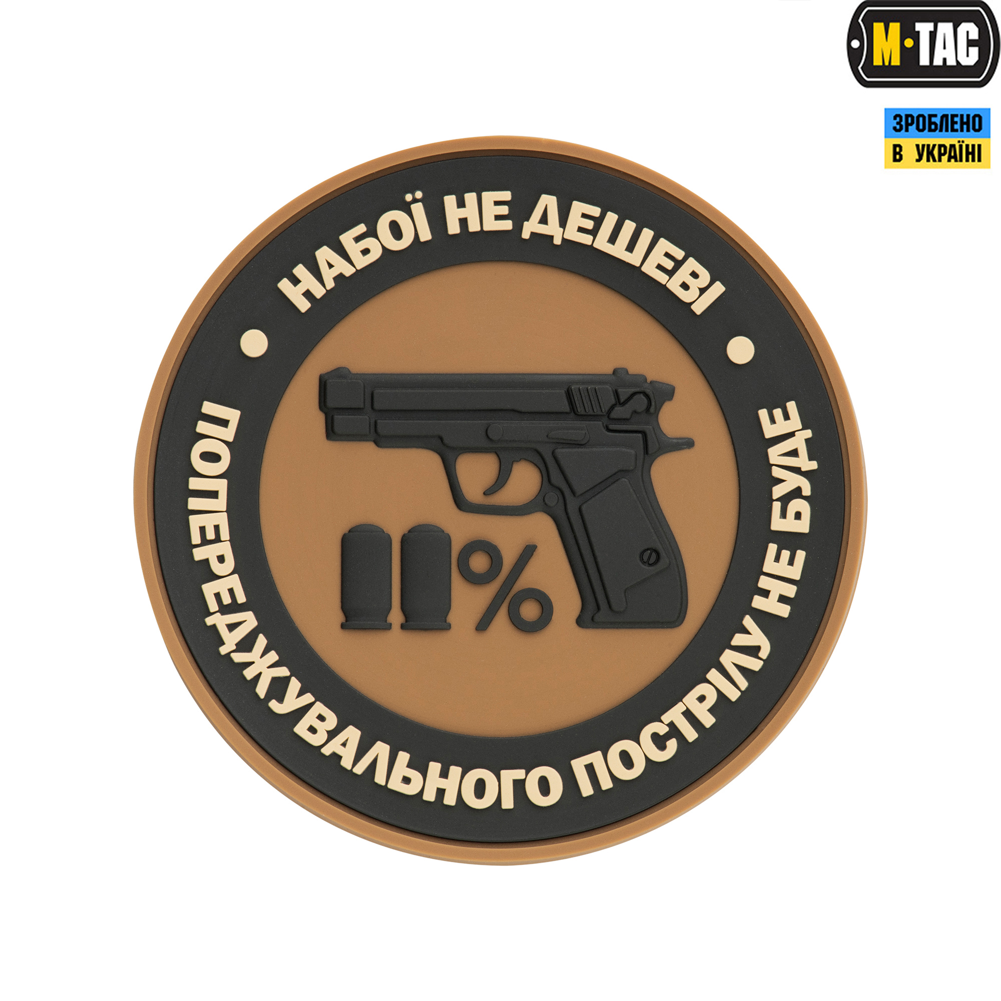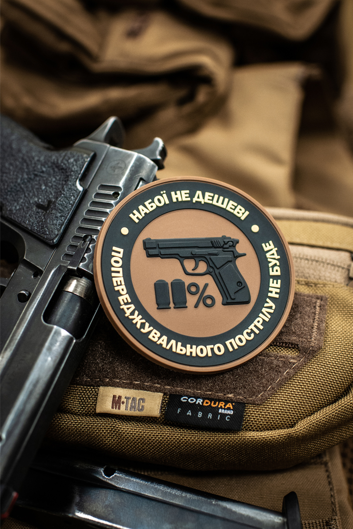 Нарукавна нашивка Набої НЕ дешеві – так званий morale patch. На M-Tac нашивки Набої НЕ дешеві зображений пістолет з патронами, які символізують рух 11% і напис по колу: “набої НЕ дешеві – попереджувальних пострілу НЕ буде”. Патч кріпиться на нарукавний майданчик з липучки велкро, (на самому патчі зі зворотного боку пришита відповідна частина липучки), або на спорядження – рюкзаки, каски та інше. Статутною, як і всі моральні патчі, дана нашивка не є, але може носитися як в зоні БД, так і за її межами.