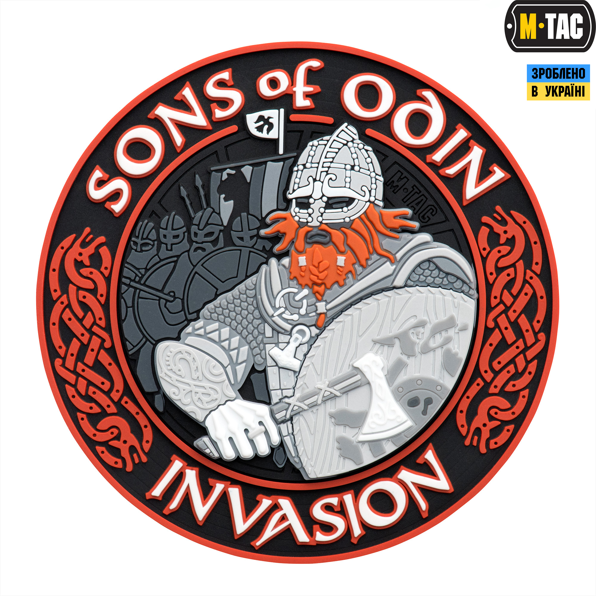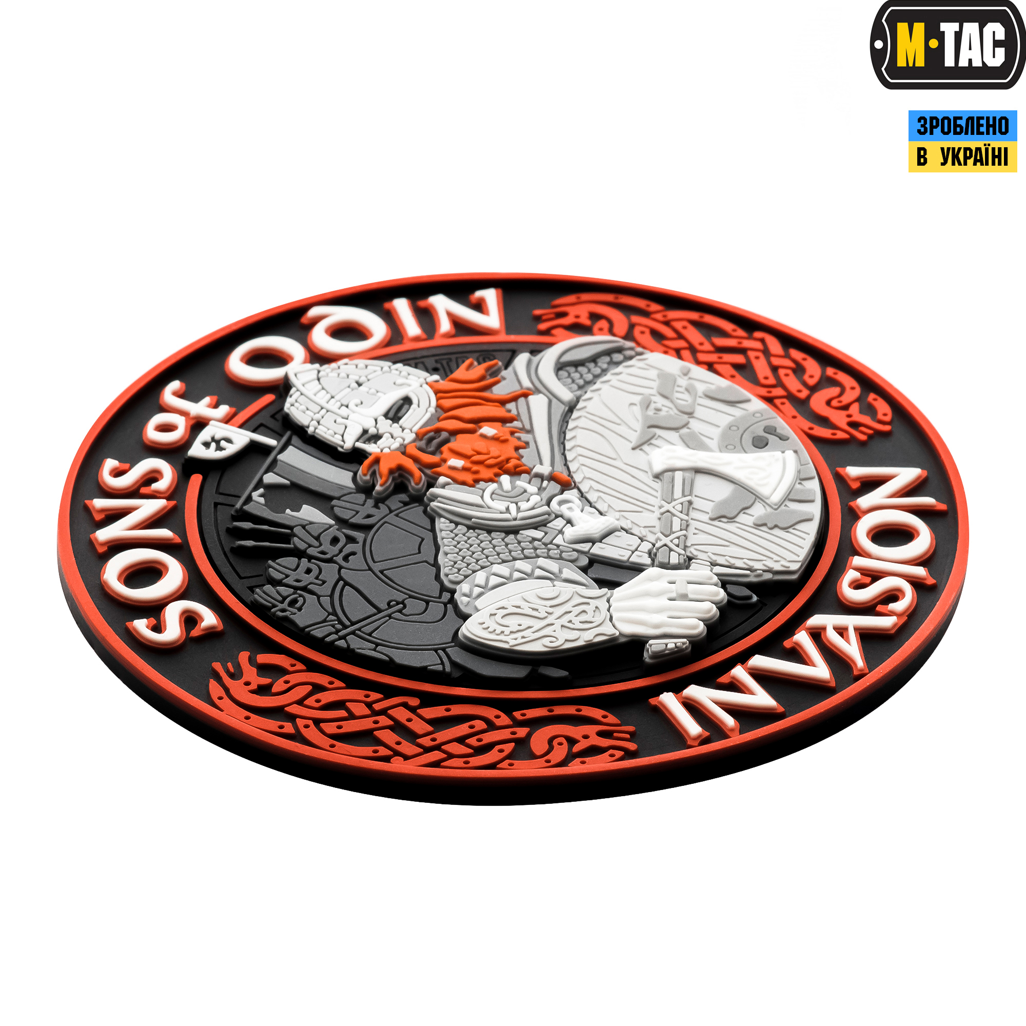 M-Tac нашивка Sons of Odin. Патч кріпиться на нарукавний майданчик з липучки велкро, (на самому патчі зі зворотного боку пришита відповідна частина липучки), або на спорядження – рюкзаки, каски та інше. Статутною, як і всі моральні патчі, дана нашивка не є, але може носитися як в зоні БД, так і за її межами.