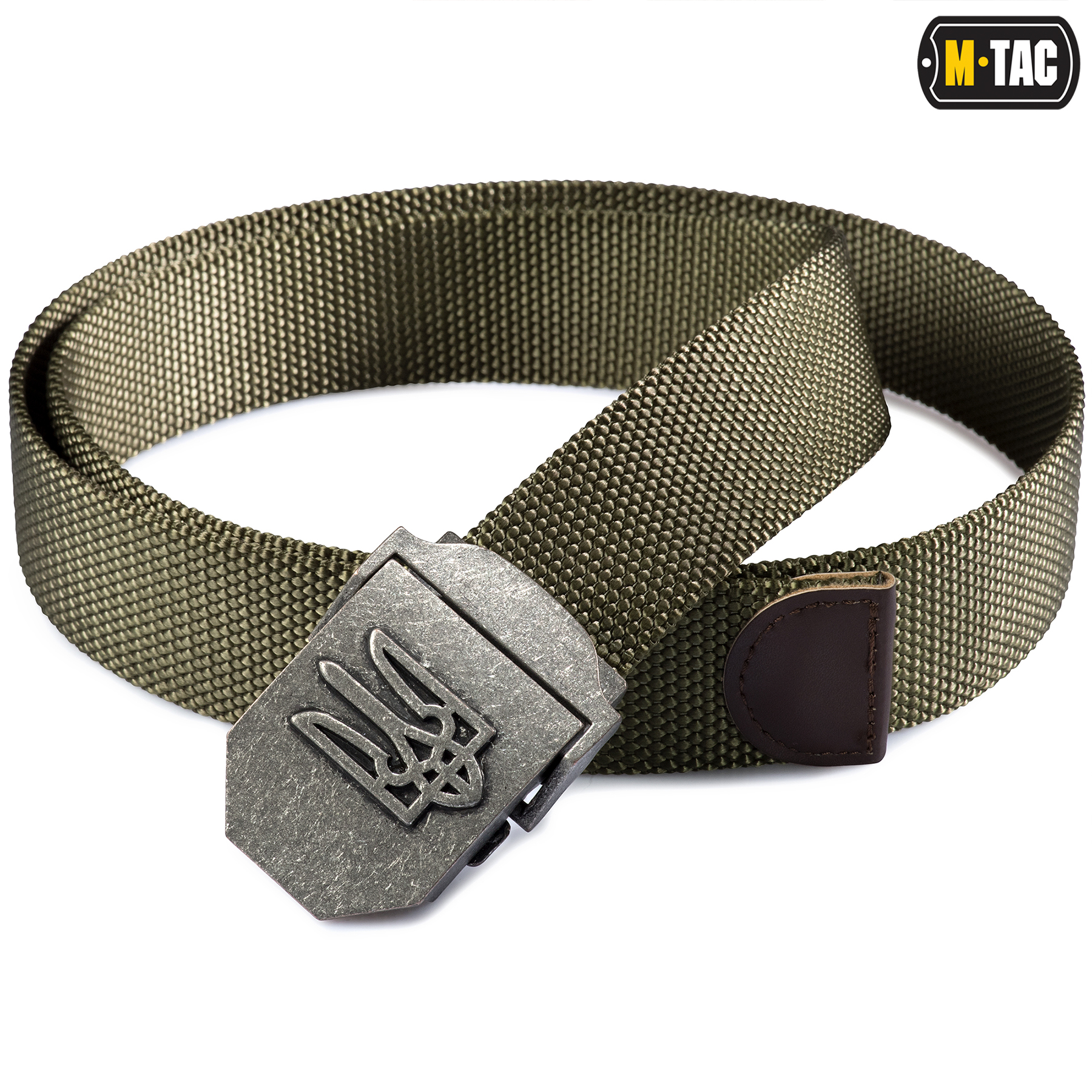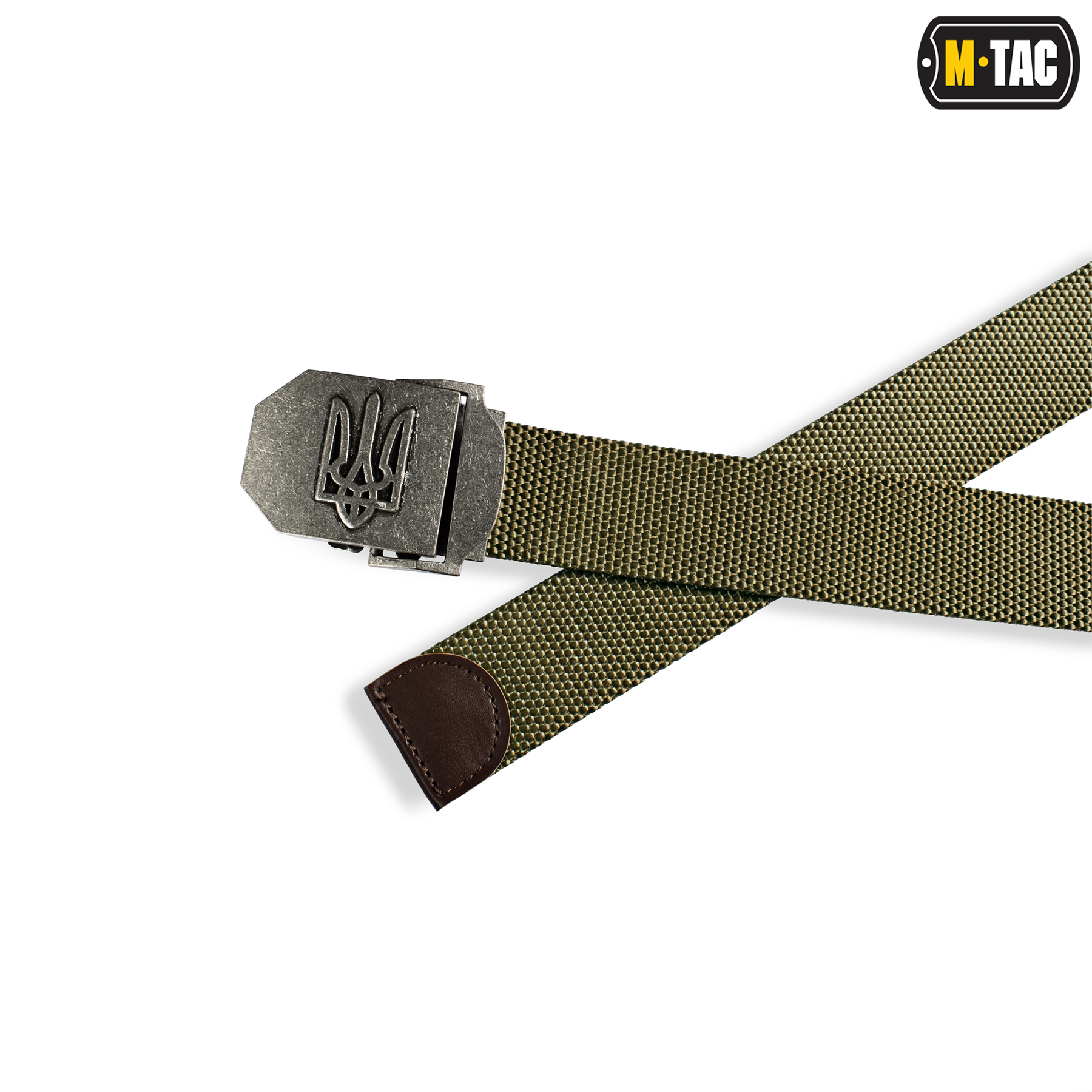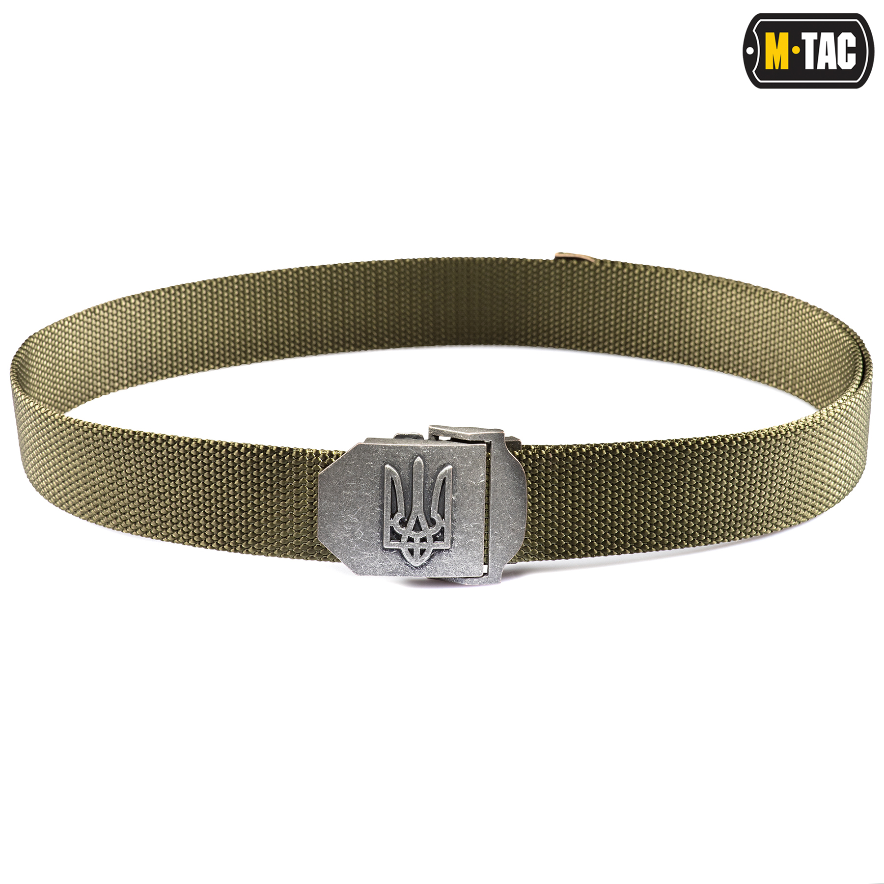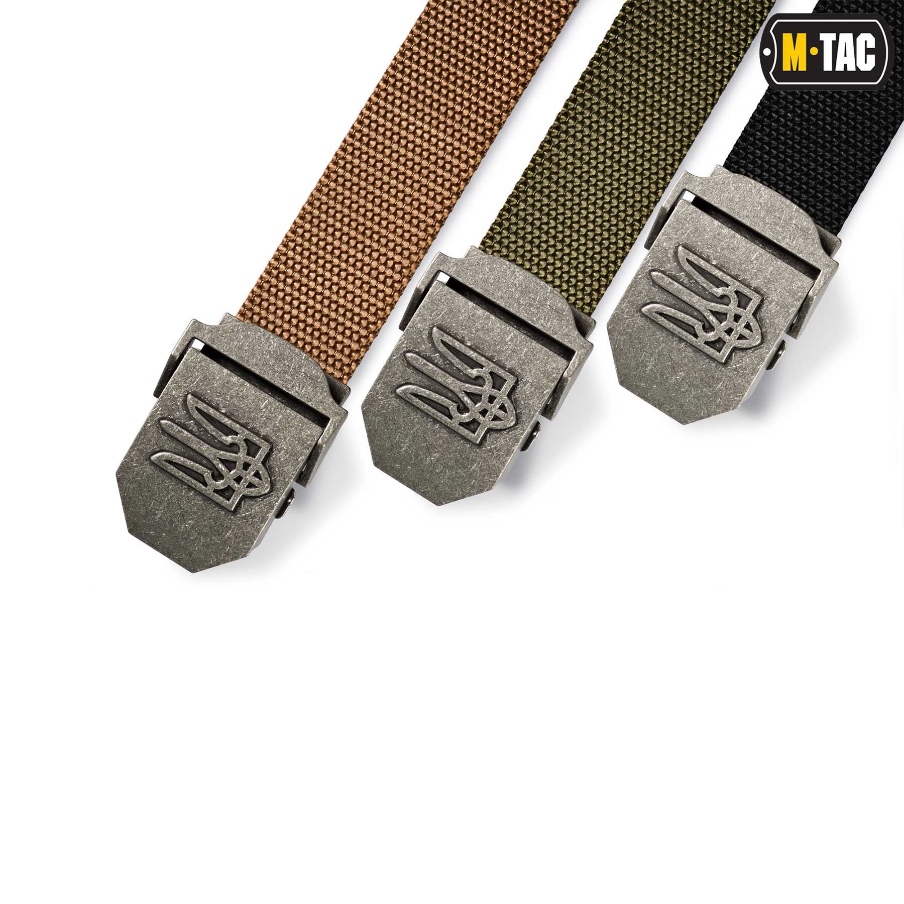 M-Tac поясний (брючний) ремінь в стилі мілітарі. Досить зручний ремінь для носіння на кожен день хоч під військові штани, хоч під джинси або шорти. Регулюється за рахунок зручної у використанні пряжки із зображенням емблеми Тризуба (Державний Герб України – один з трьох офіційних символів держави, поряд з прапором і гімном. Центральною геральдичною фігурою герба є «тризуб» князя Володимира.). Ремінь чудово підійде військовим, працівникам правоохоронних органів, охоронцям, мисливцям, туристам, рибалкам і просто любителям військової тематики.