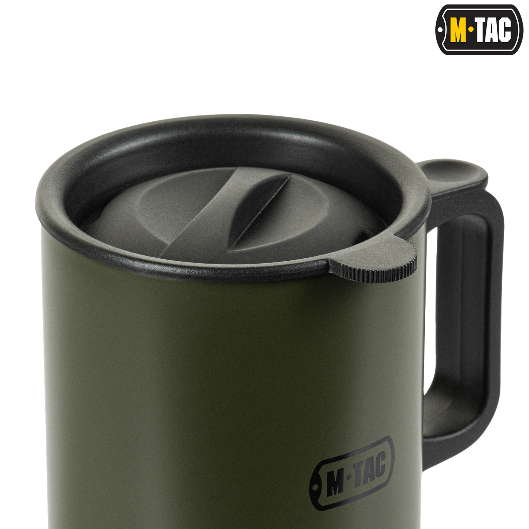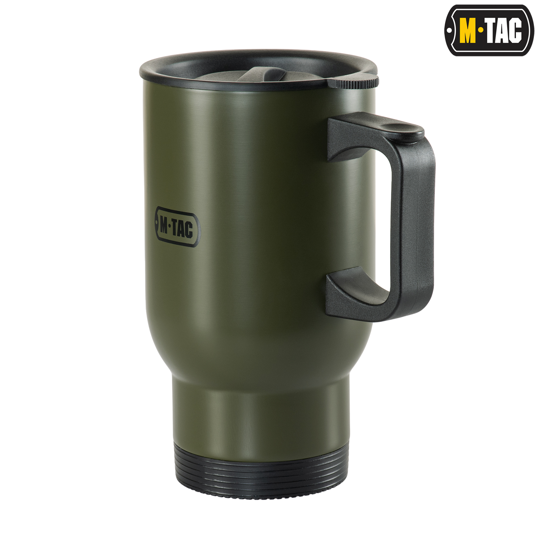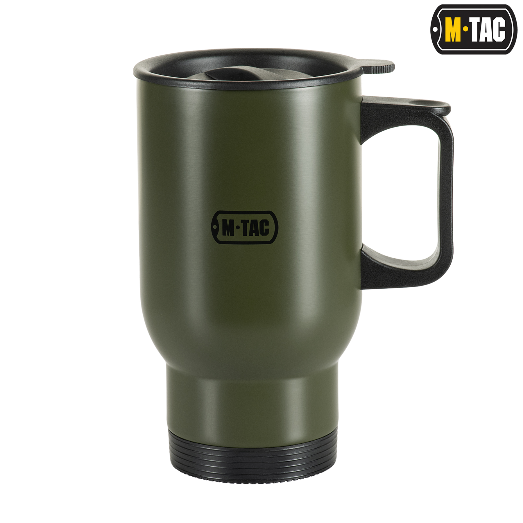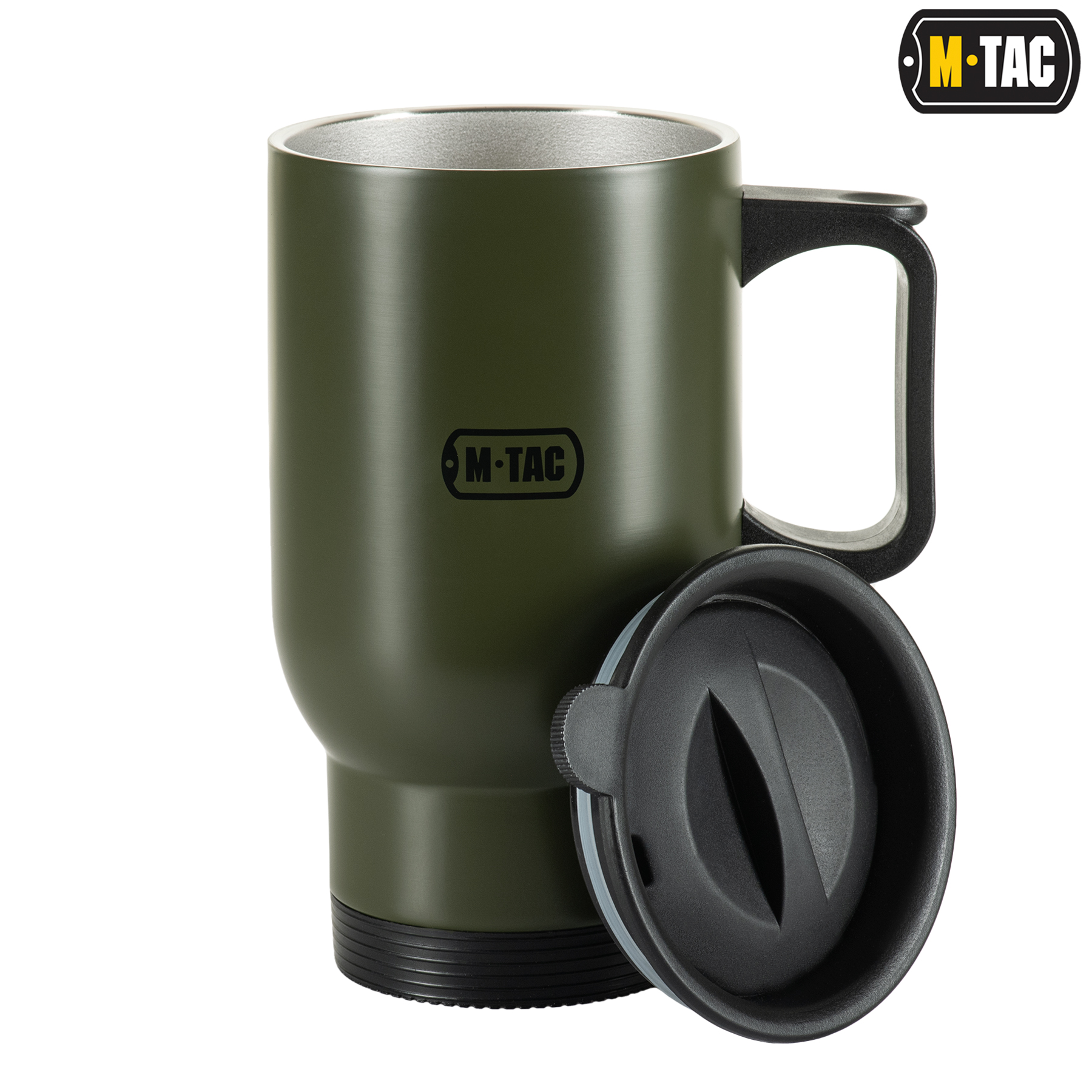 Сталевий термокухоль ємністю 450 мл від бренду M-Tac. Особливості – двошарові стінки, герметичний прошарок і вакуум. Форма виробу буде однаково хороша і для офісних робітників, і для водіїв, адже завдяки своїй конструкції вона чудово підходить для більшості автомобільних підстаканників. А крім цього – для польових виходів, походів, мисливства та рибальства. Кухоль має спеціальну герметичну кришку з обладнаною поїлкою і інтегрованим в дно вкладишем, для того щоб вона не ковзала по поверхні. Окрему увагу було приділено безперечно зручній, широкій та комфортній ручці, що виготовлена з пластику і має спеціальну виїмку під великий палець.