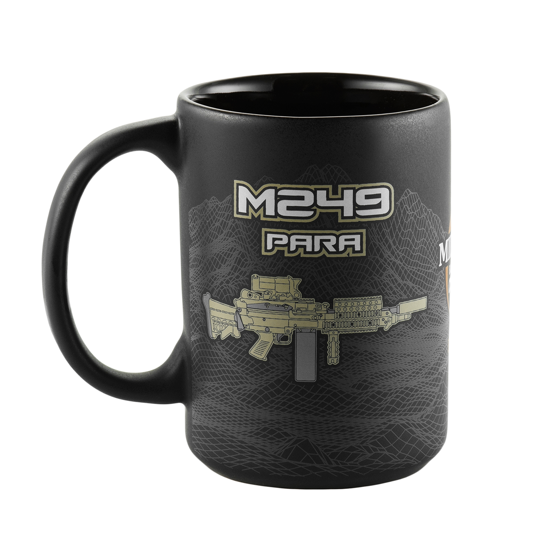 Чашка M249 від Military Black Coffee Company – чудовий спосіб підтримати ветеранський бізнес, насолоджуючись улюбленою ароматною кавою або чаєм. Чашка виготовлена з кераміки – матеріалу, що вирізняється міцністю, довговічністю, термостійкістю та екологічністю. На її зовнішній стороні зображений американський ручний кулемет M249 Para, логотип Black Coffee Company, а також череп на фоні піки, який пронизує обвитий змією ніж. Малюнок виконано за технологією деколь, яка полягає у перенесенні зображення з паперу на виріб та його подальшому закріпленні завдяки високотемпературному випалу. Дана технологія дозволяє виконувати зображення високої точності, гарантуючи його стійкість та довговічність.